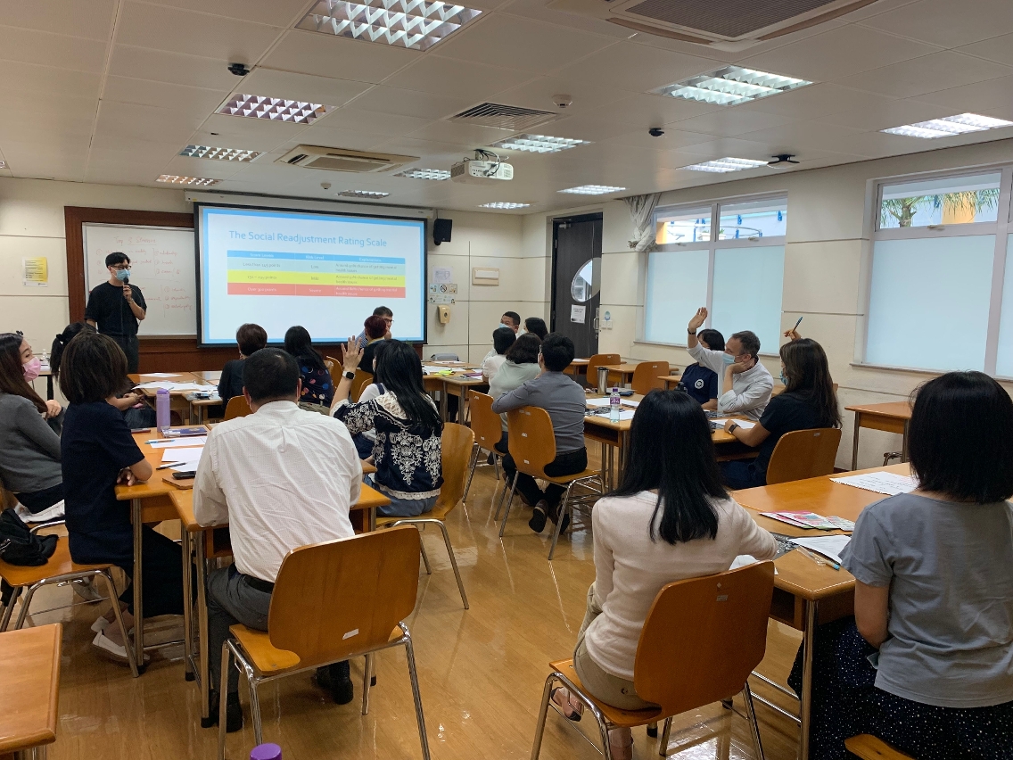 為了讓教師能理解受情緒及壓力困擾的學生,會上利用壓力評估工具和案例作結合介紹。同時進行討論和交流分享,幫助老師了解學生情緒問題和有關應對處理方法。