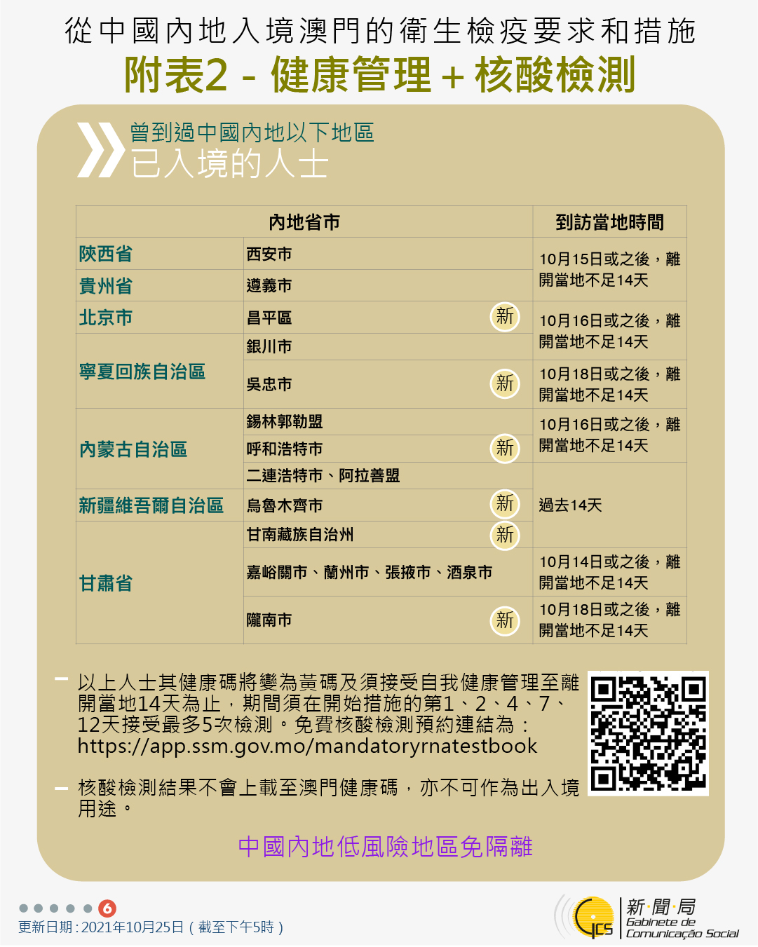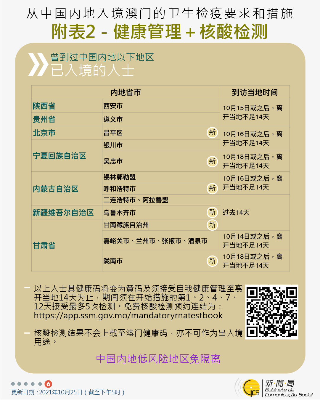 【圖文包】2021/10/25最新入境澳門衛生檢疫要求和措施