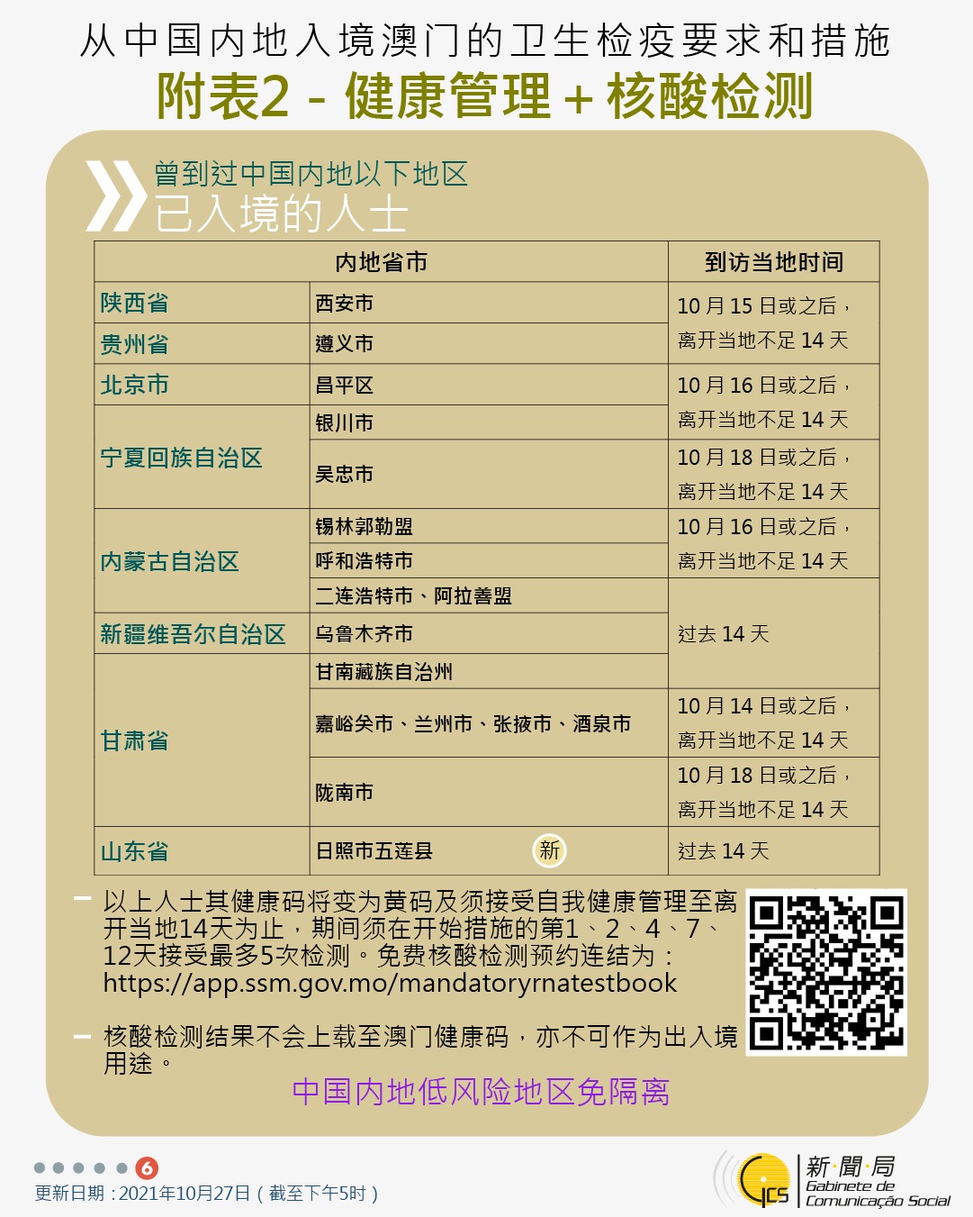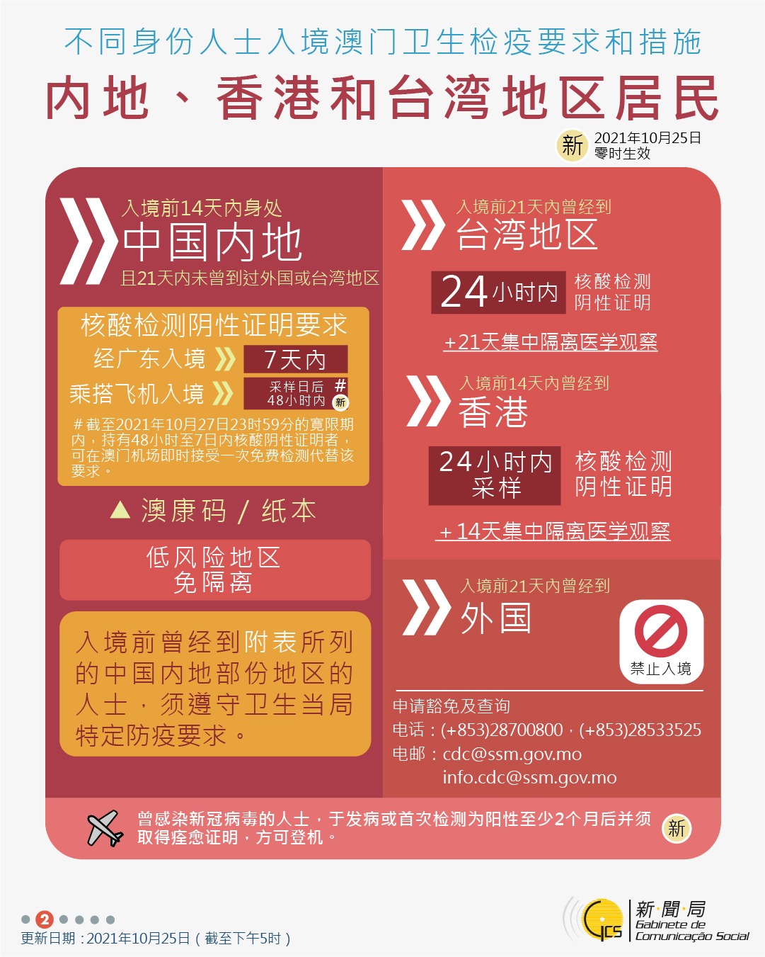 【圖文包】2021/10/27最新入境澳門衛生檢疫要求和措施