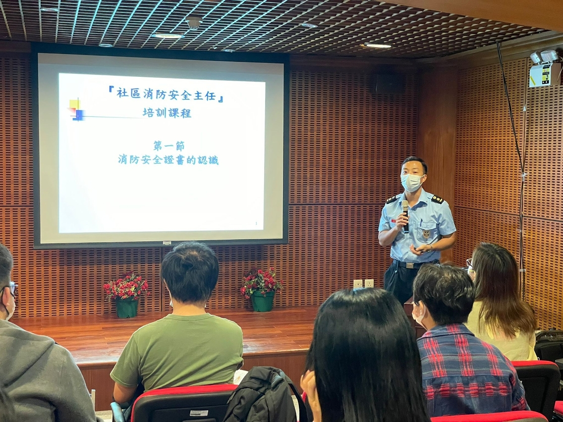 為繼續擴大上述機制的成效,消防局於本年9月下旬舉辦第五期“社區消防安全主任”培訓課程,期間因應本澳疫情變化而暫緩培訓工作,及後於本年10月30日恢復培訓。是次課程邀請了各坊會及團體共42人參與。培訓課程分為消防理論知識和滅火實習兩部分,內容包括滅火理論、救護知識、燃料安全知識,以及教導如何正確使用滅火筒和消防喉轆的操作等。至今,消防局一共完成了五期的“社區消防安全主任”培訓課程及兩期的進階培訓課程,均取得良好成效及正面作用。