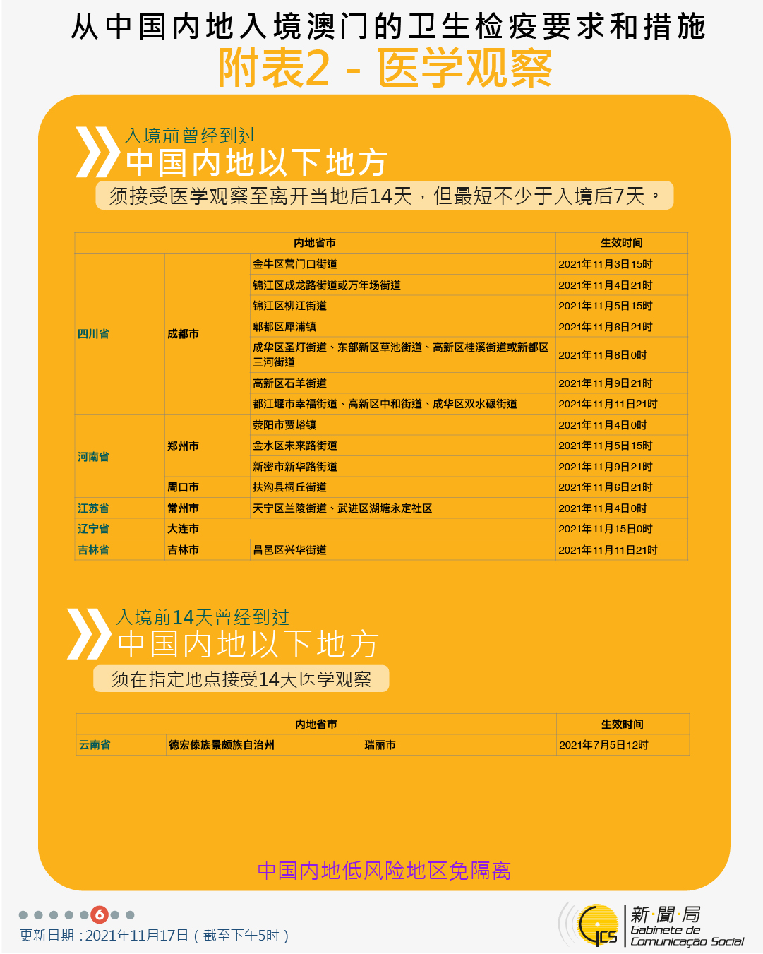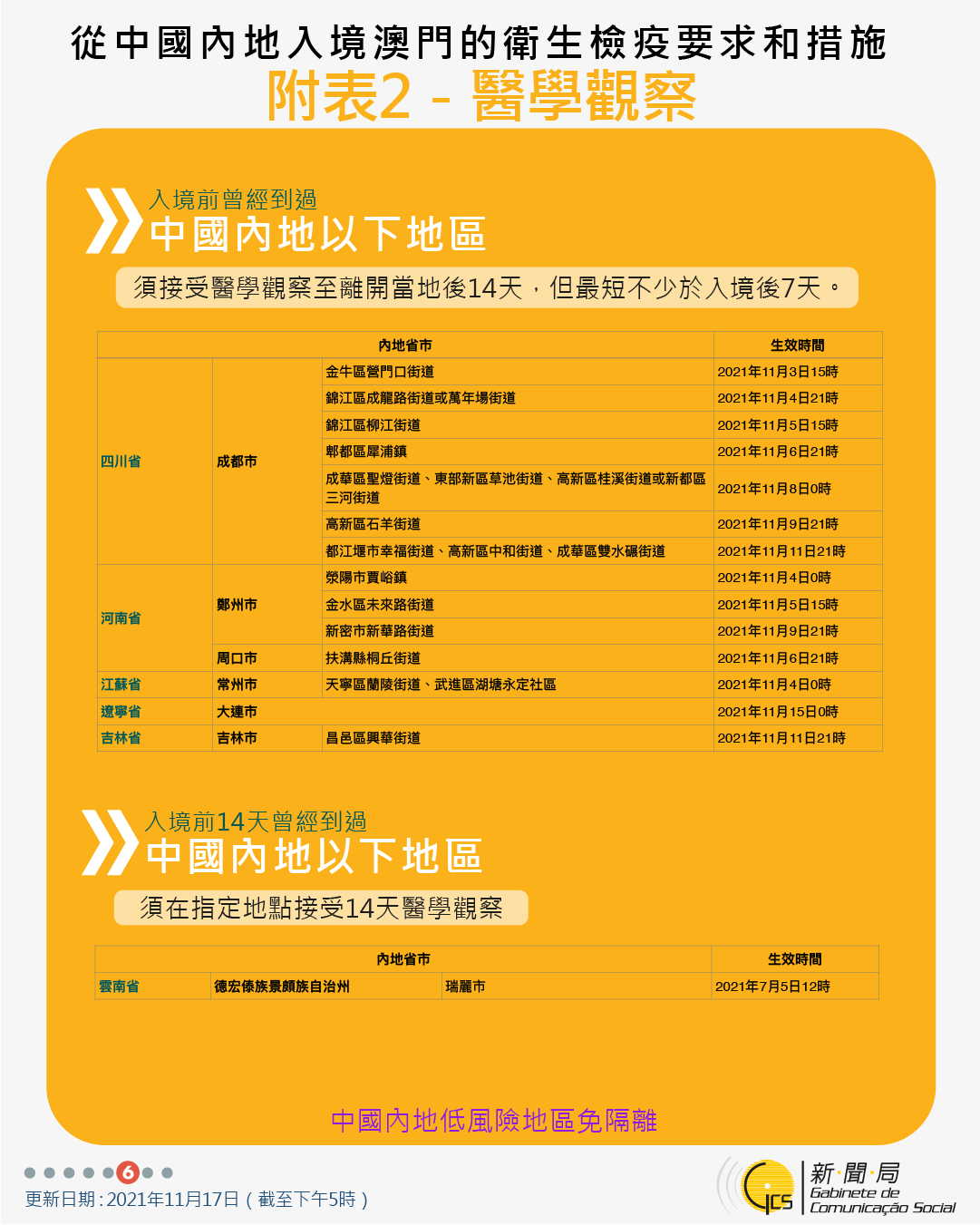 【圖文包】2021/11/17最新入境澳門衛生檢疫要求和措施