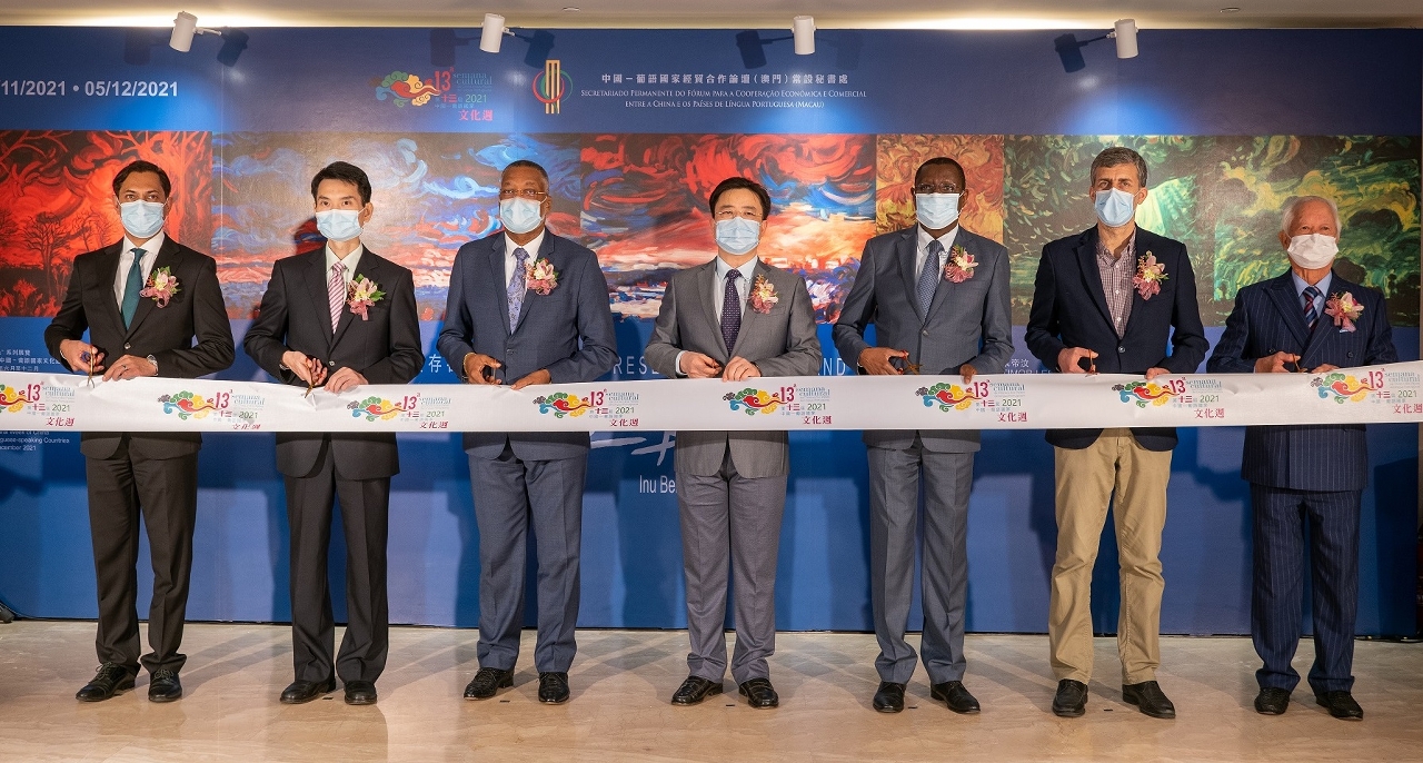 由中葡論壇(澳門)常設秘書處主辦的“第十三屆中國—葡語國家文化週 — 葡光十色”系列展覽之東帝汶藝術家Ibu Bere “記憶與存在”作品展於11月19日下午6時30分在中國與葡語國家商貿合作服務平台綜合體舉行開幕式。