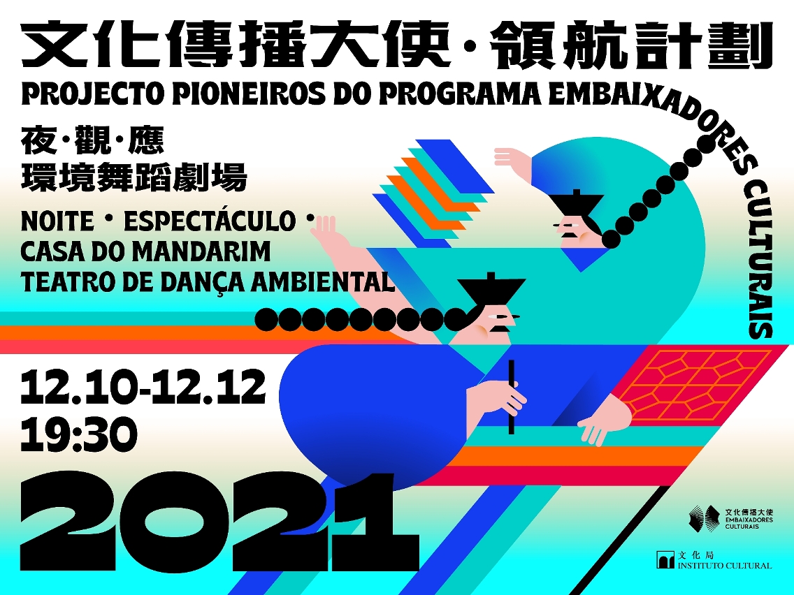 “文化傳播大使”計劃學員透過培訓課程中的獲益,結合新穎的文化傳播方式,與文化局攜手策劃實踐項目“領航計劃”,推出親子工作坊、導賞、舞蹈演出及互動劇場等多項不同形式的體驗活動,讓大眾感受文化傳播及傳承的魅力。《夜‧觀‧應》環境舞蹈劇場為“領航計劃”其中一個項目,是首個以澳門世遺建築鄭家大屋及中國近代名人鄭觀應為主軸的環境舞蹈劇場,由“文化傳播大使”計劃學員劉迎宏、關偉銘、吳潔玲、孫嘉鳴、徐騫言、高蓉智、張少鵬、梁卓瑤、勞翠盈,聯同本地創作及演藝團隊精心打造,透過舞者姿體呈現鄭觀應不同時刻的生命歷程。觀眾可透過該節目感受鄭觀應創作《盛世危言》的思想寫照,以及瞭解鄭家大屋的精神內核。