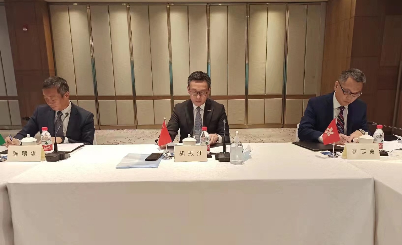《聯合維修管理合作安排》簽署儀式於今午三時半在深圳舉行,簽署代表為中國民用航空局副局長胡振江、香港特別行政區民航處處長廖志勇和澳門特別行政區民航局局長陳穎雄。