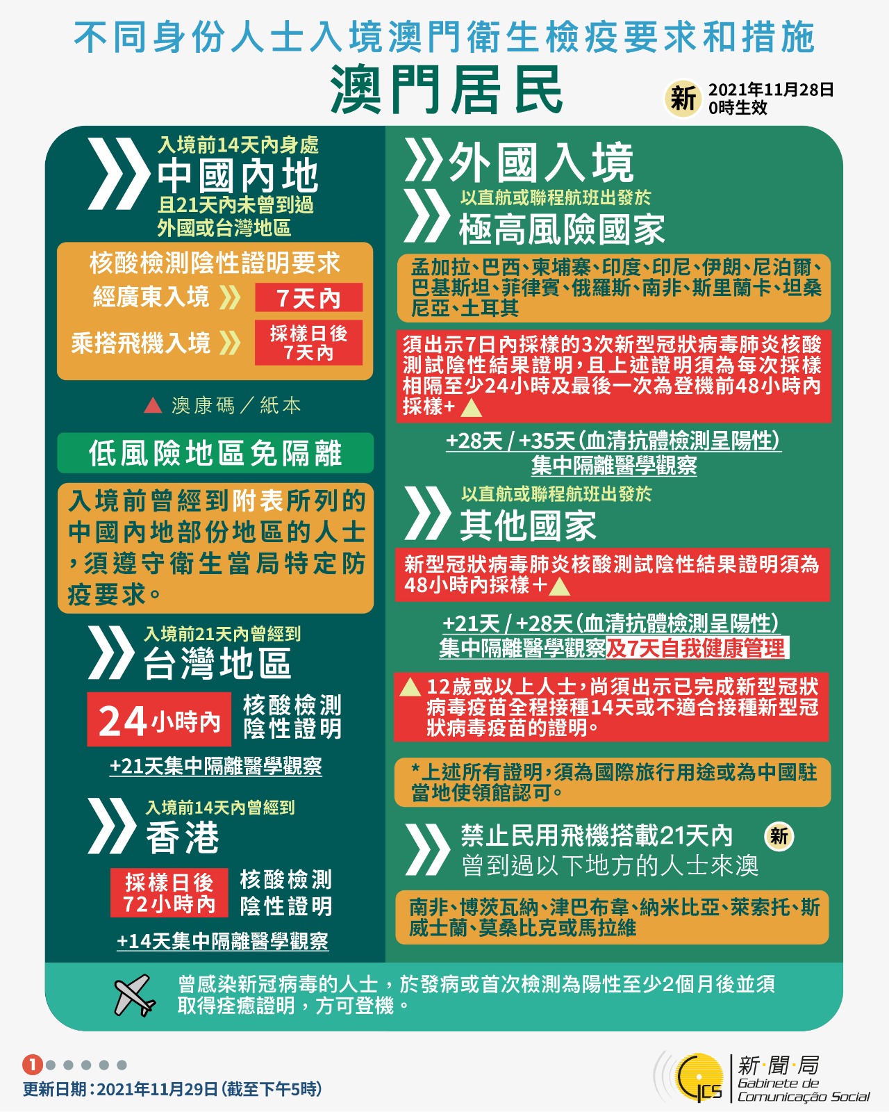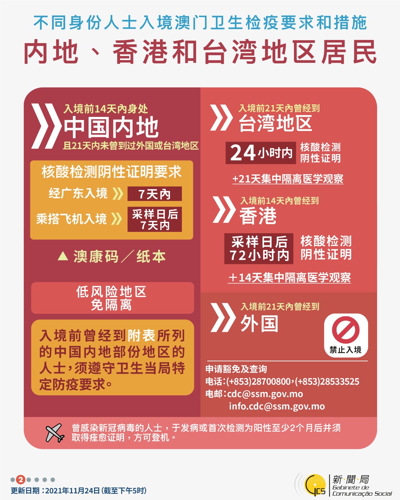 【圖文包】2021/12/1最新入境澳門衛生檢疫要求和措施