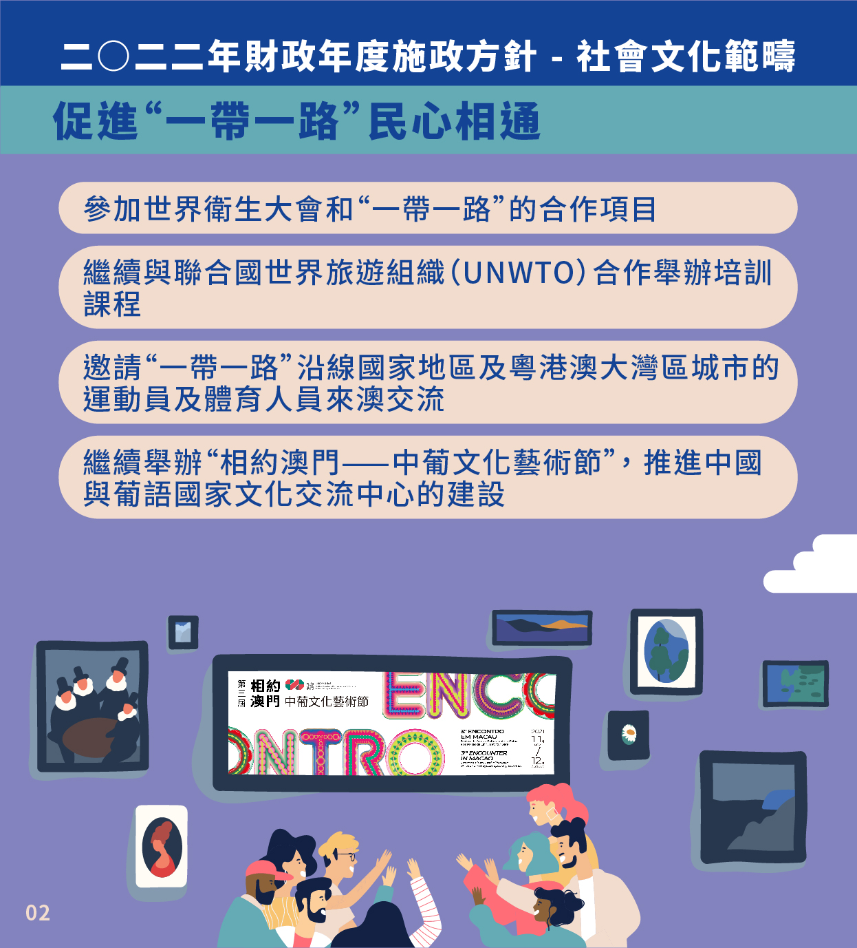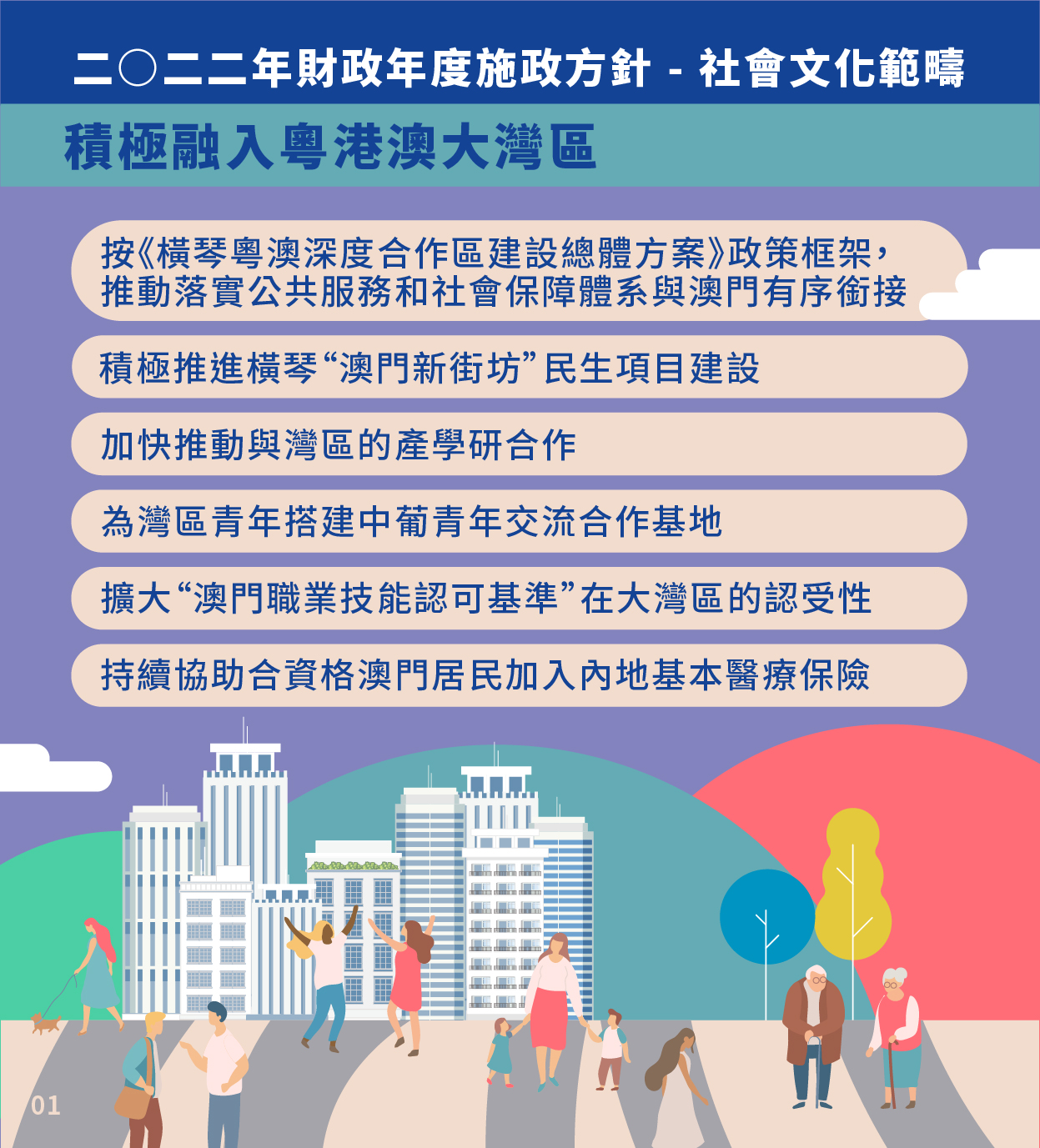 二〇二二年財政年度施政方針社會文化範疇圖文包-積極融入粵港澳大灣區 促進“一帶一路”民心相通