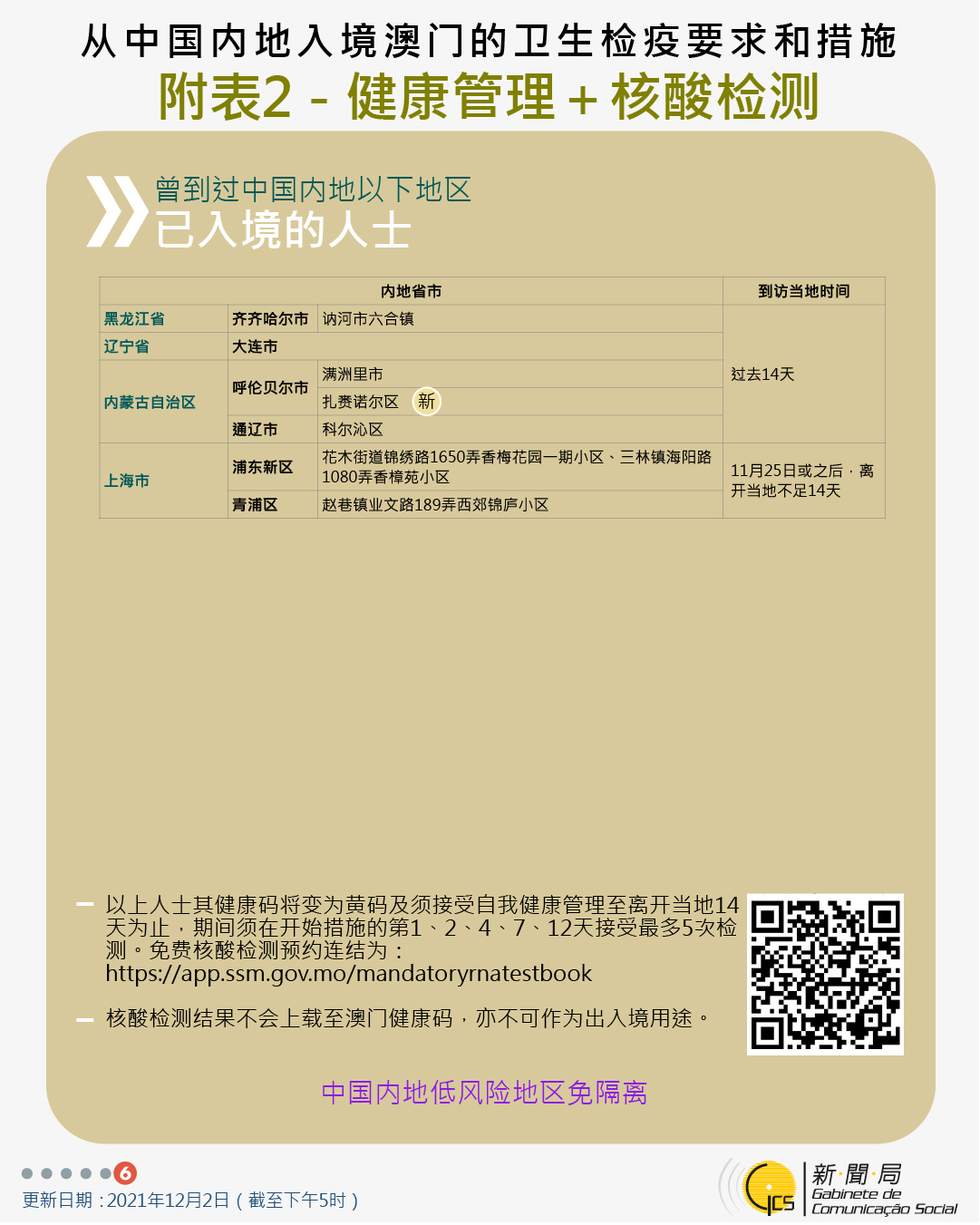 【圖文包】2021/12/2最新入境澳門衛生檢疫要求和措施