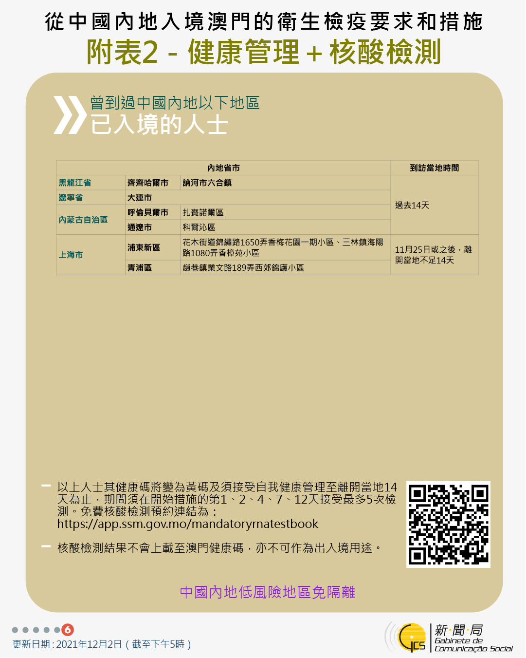 【圖文包】2021/12/3最新入境澳門衛生檢疫要求和措施