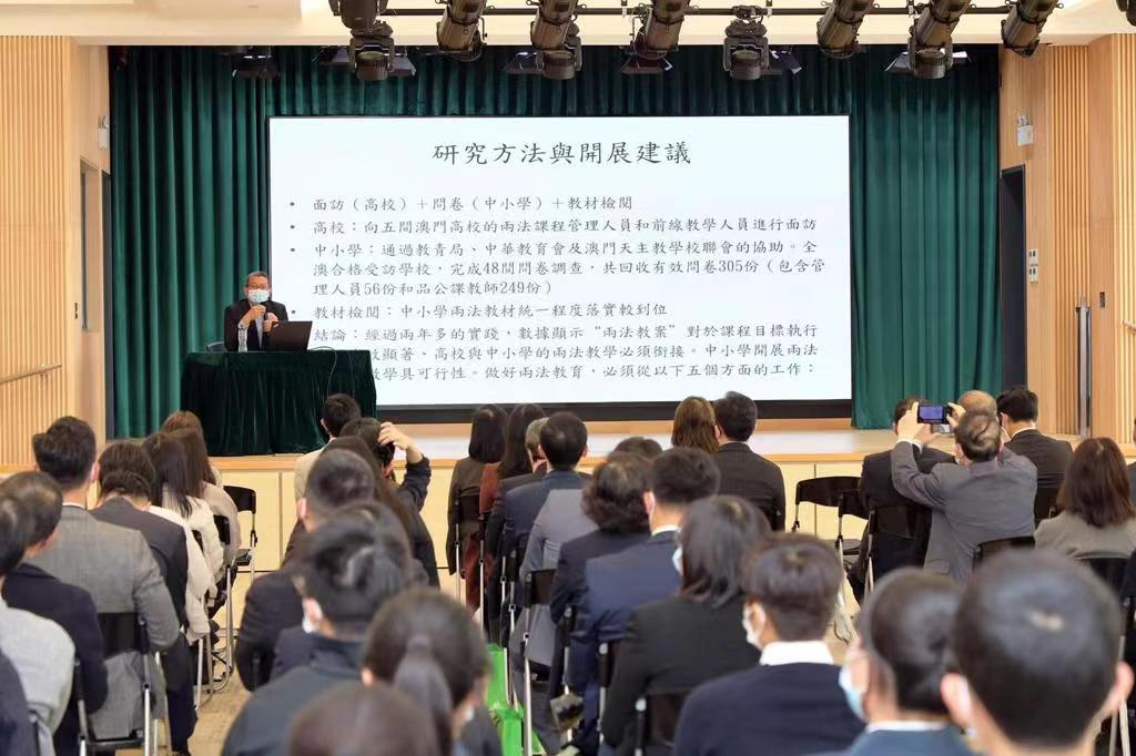 專題活動同場設有澳門教青局普法教育工作及教材展覽,並邀請了澳門大學憲法與基本法研究中心主任駱偉建教授簡介“澳門特區憲法與基本法普及教育系統化研究”報告。展覽中總結了教青局在澳門高等教育和非高等教育的課程設置、教材編制、《憲法》與《基本法》教育推廣等方面的普法工作成果。並展示了學生及青年社團以及社區持續開展《憲法》和《基本法》教育工作的多年成果。