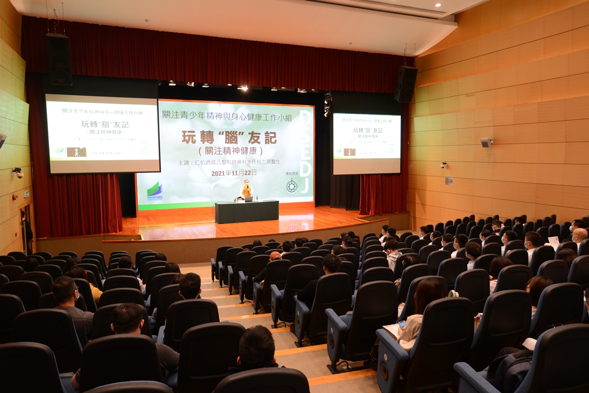 為向澳門高等院校學生及教職員宣導精神健康的重要性,關注青少年精神與身心健康工作小組於11月22日傍晚6時舉辦 “玩轉 ‘腦’友記”關注精神健康講座,講座邀請了仁伯爵綜合醫院精神科主任何志榮醫生主講,澳門理工學院提供場地贊助。活動共吸引了約90名高等院校的學生和教職員,以及輔導機構的代表參加。