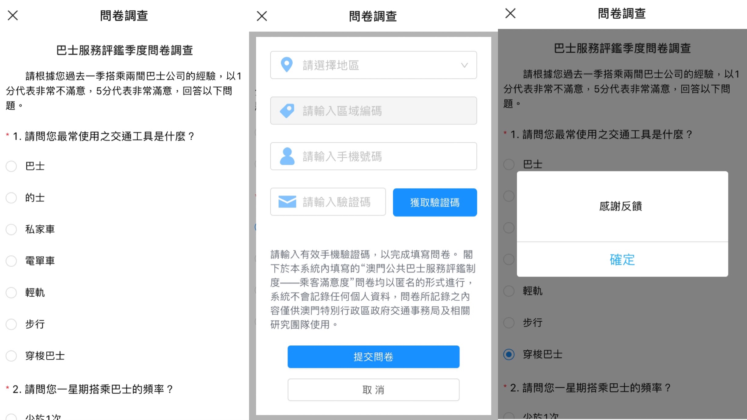 交通事務局目前以多種方式收集乘客對巴士服務的意見,以及進行“乘客滿意度”評分,其中包括於每季部份日子在“巴士報站”App開設“巴士服務評鑑季度問卷調查”,收集乘客當季的巴士服務意見,今年第四季問卷開設期限為12月13日至31日,歡迎乘客填寫問卷和表達意見(詳見二維碼)。