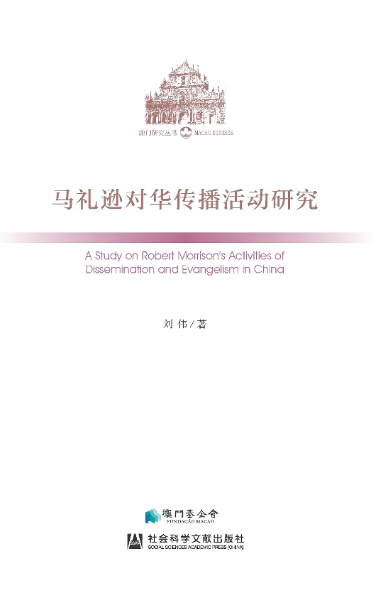 “澳門研究叢書”之一,由劉偉所著的《馬禮遜對華傳播活動研究》經已由澳門基金會和社會科學文獻出版社聯合出版,並於全國包括澳門地區同時發行。