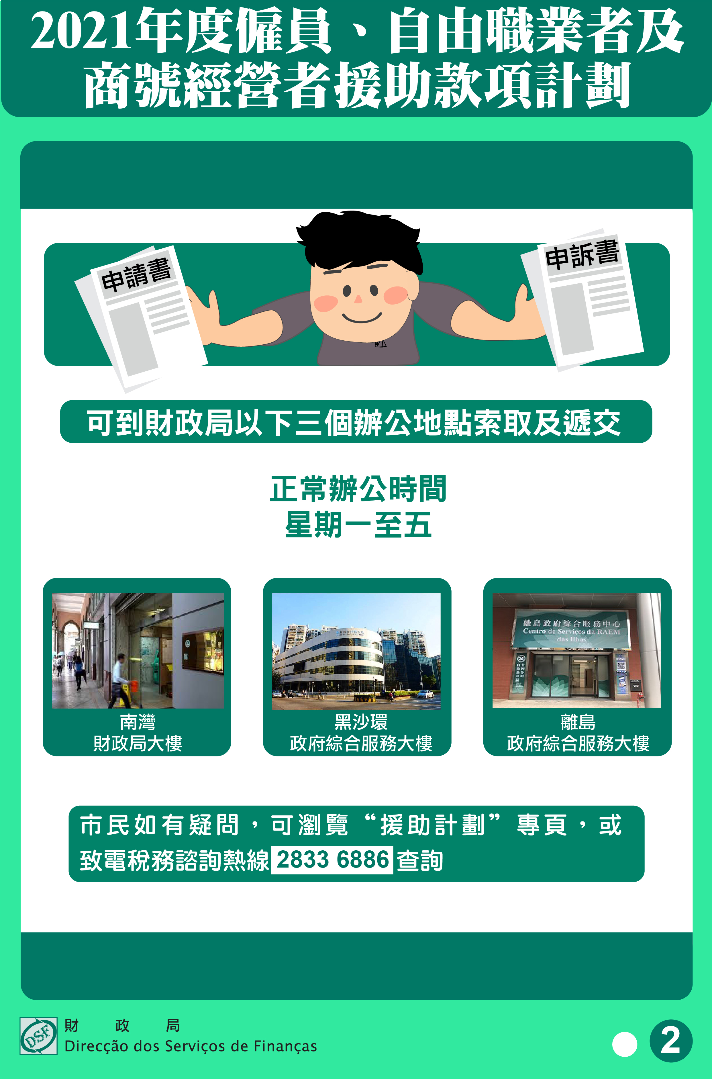 查詢請致電財政局稅務諮詢熱線2833 6886。