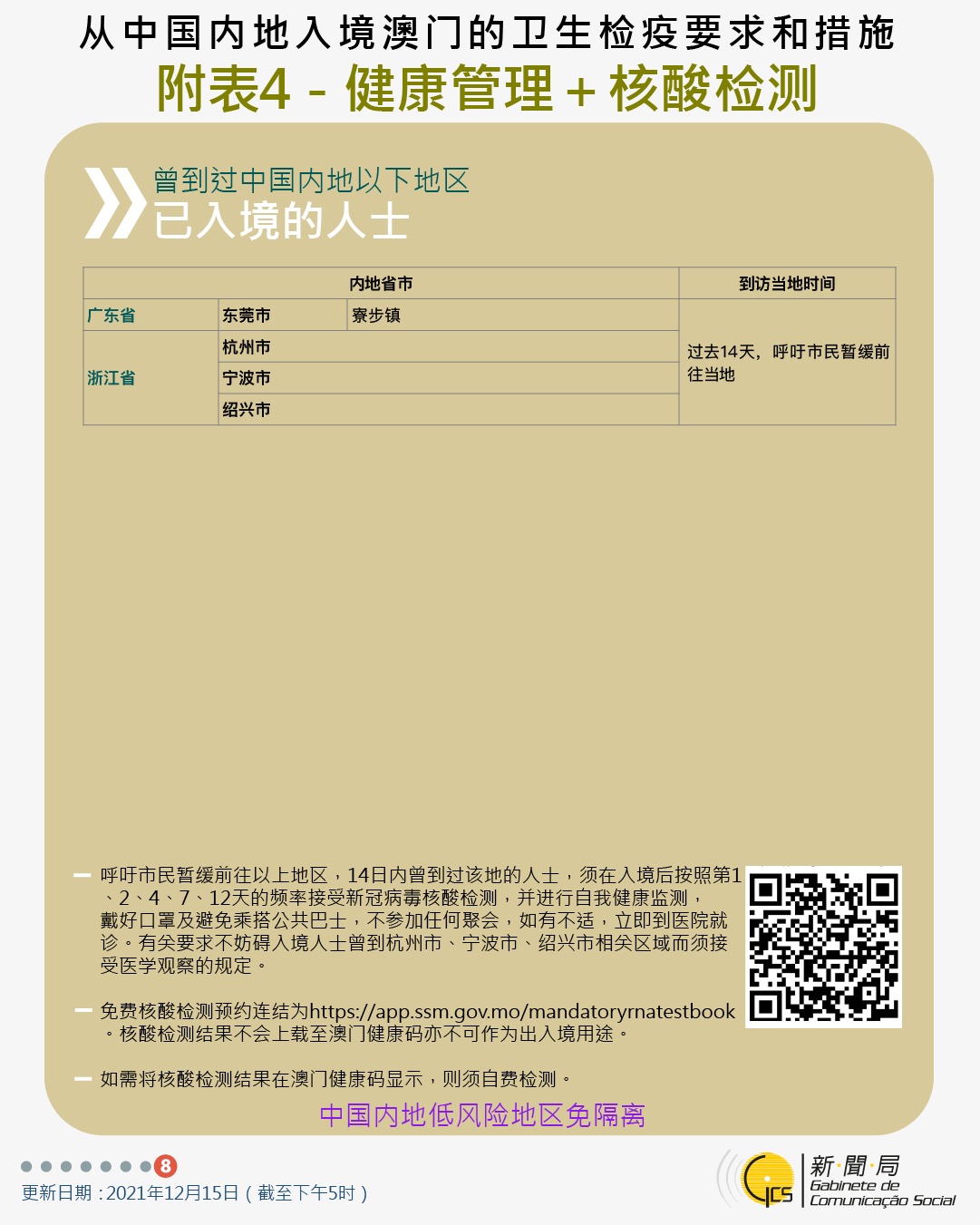 【圖文包】2021/12/23最新入境澳門衛生檢疫要求和措施