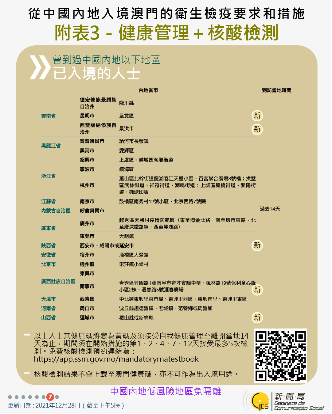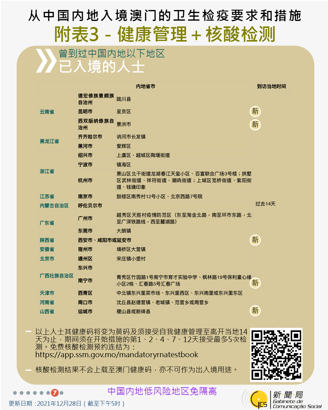 【圖文包】2021/12/28最新入境澳門衛生檢疫要求和措施