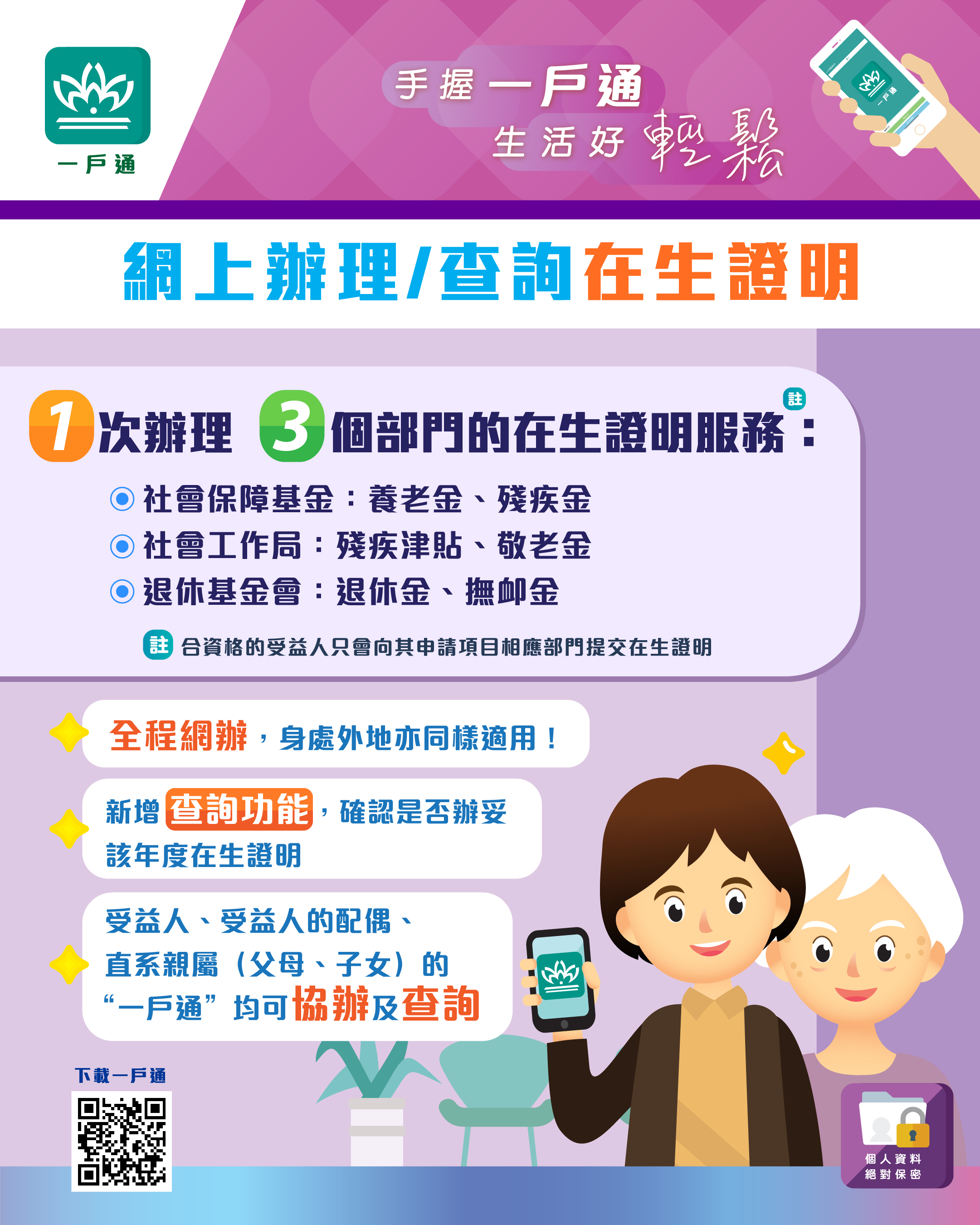 當局鼓勵受益人使用“一戶通”辦理2022年度在生證明,如屬必要親臨辦理者,亦呼籲受益人無需急於1月上旬前往服務點,以減少人群聚集。