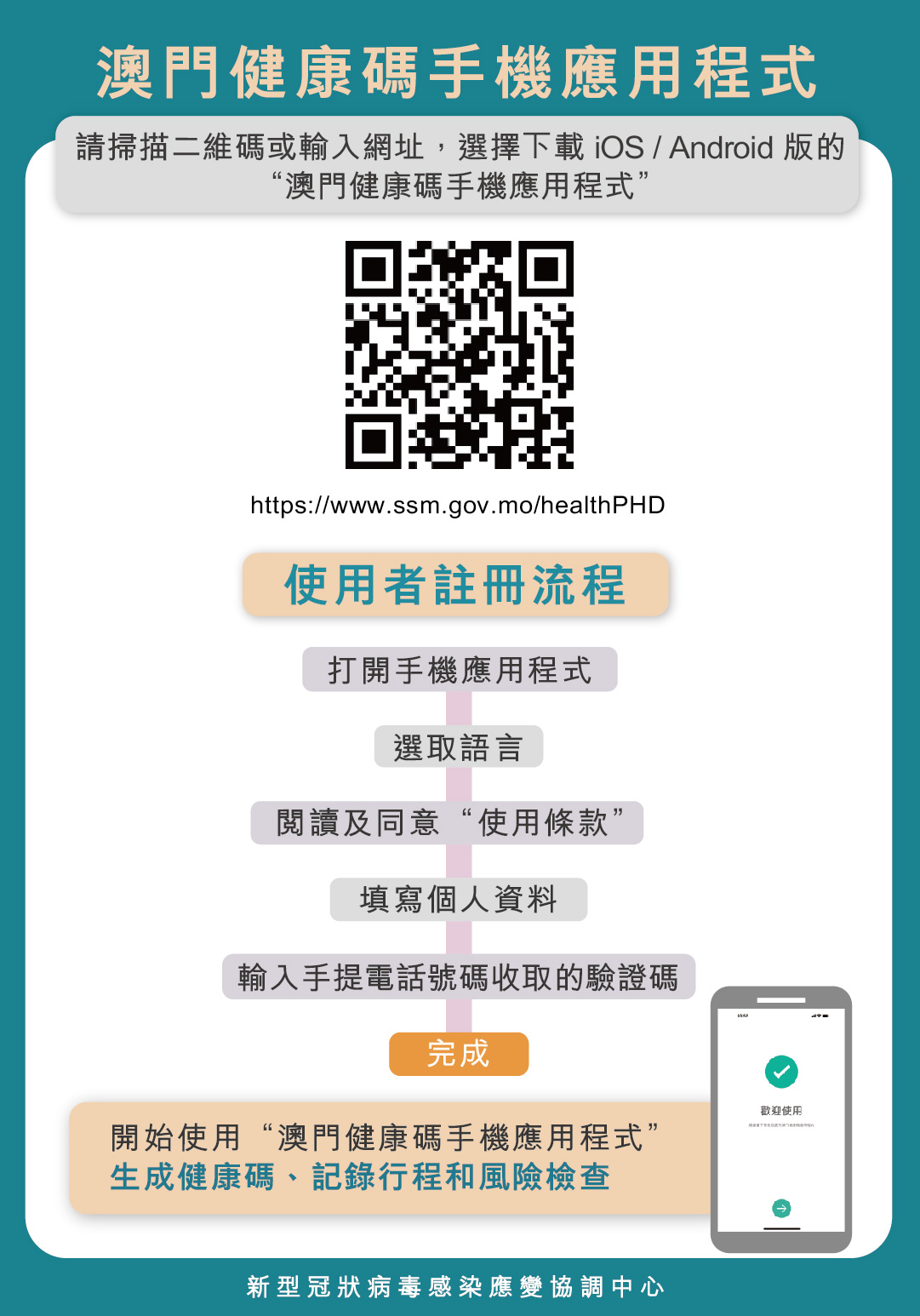 新型冠狀病毒感染應變協調中心(下稱「應變協調中心」)表示,「澳門健康碼」手機應用程式早於去年11月18已推出供居民下載使用,該手機應用程式除具備健康申報功能外,亦設有行程記錄和風險檢查兩項功能。其中行程記錄功能是協助病例及接觸者準確回憶近期的行程,以配合流行病學調查工作;風險檢查則可使居民透過應用程式與病例的行程進行對比,及時獲得風險提示訊息,亦能加快對風險人群的識別及管理,提高抗擊疫情的效率。