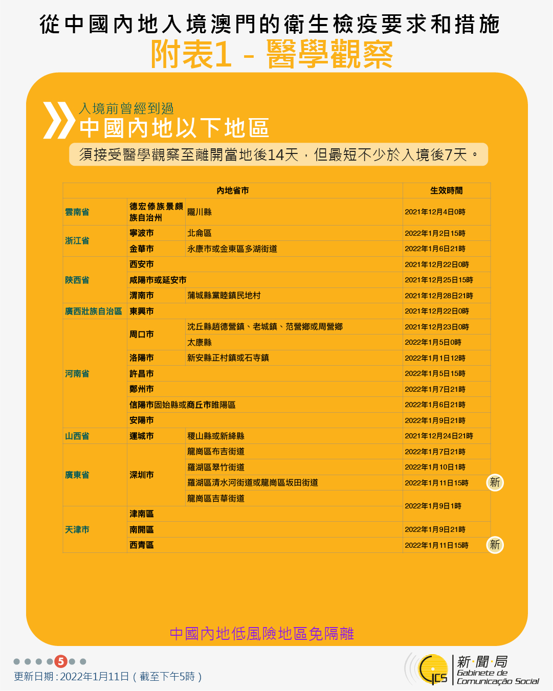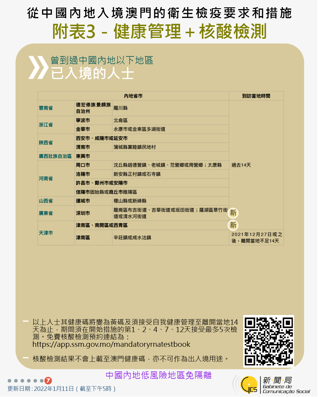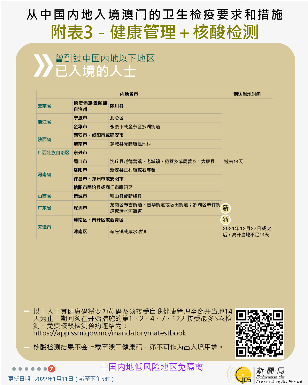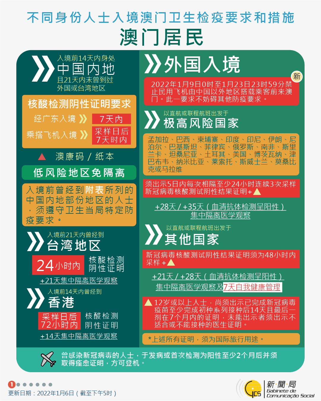 【圖文包】2022/1/11最新入境澳門衛生檢疫要求和措施