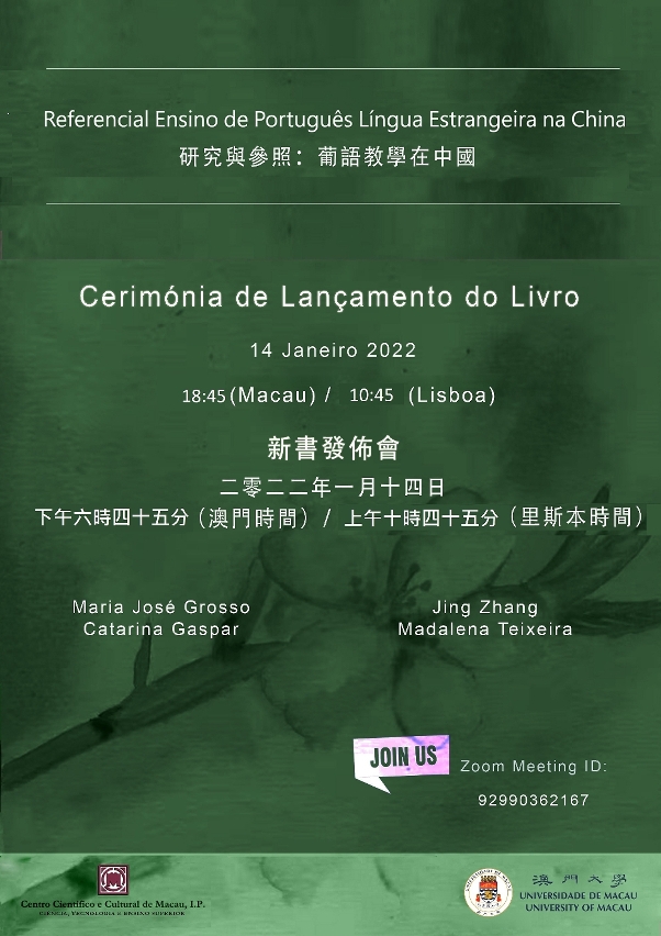 澳門大學與里斯本的澳門科學文化中心將於1月14日(星期五)舉行《研究與參照:葡語教學在中國》線上新書發佈會。歡迎有興趣人士在線參與。