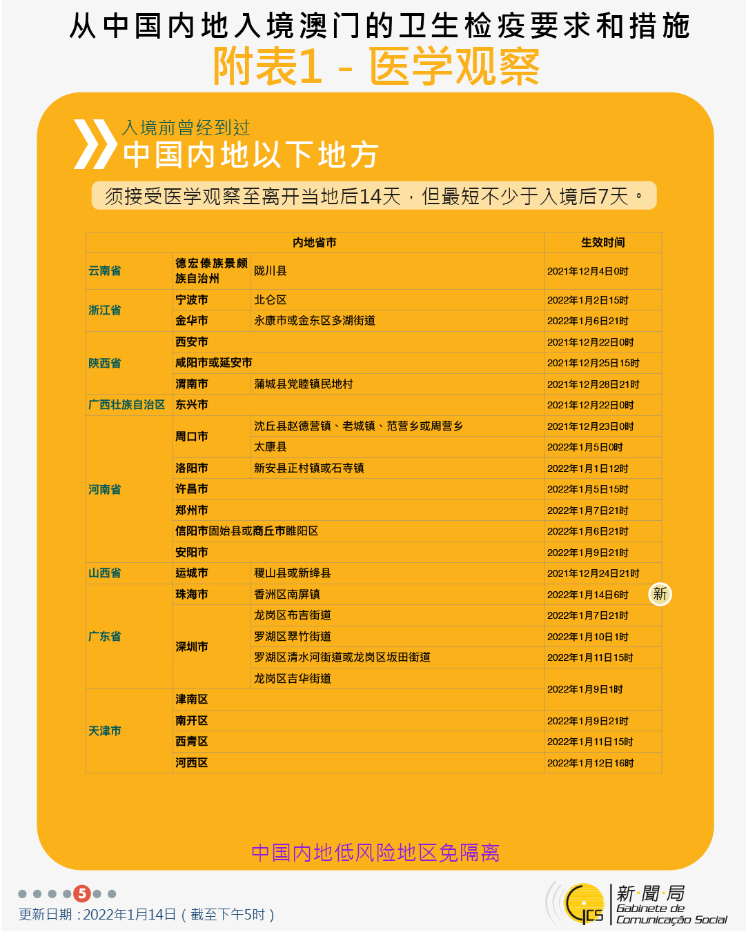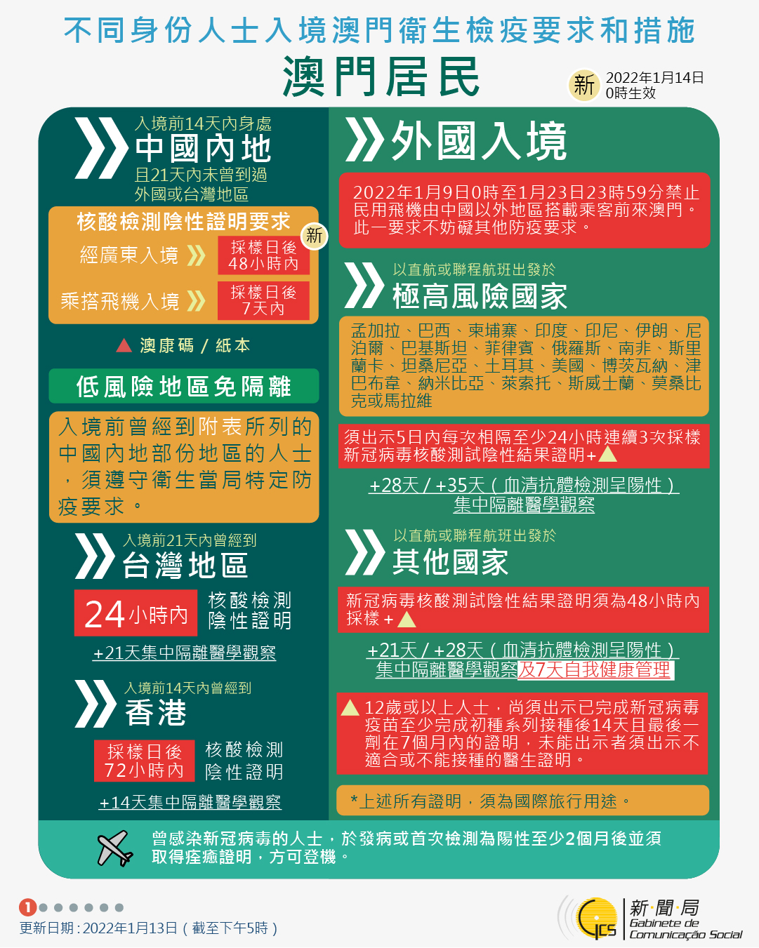 【圖文包】2022/1/14最新入境澳門衛生檢疫要求和措施