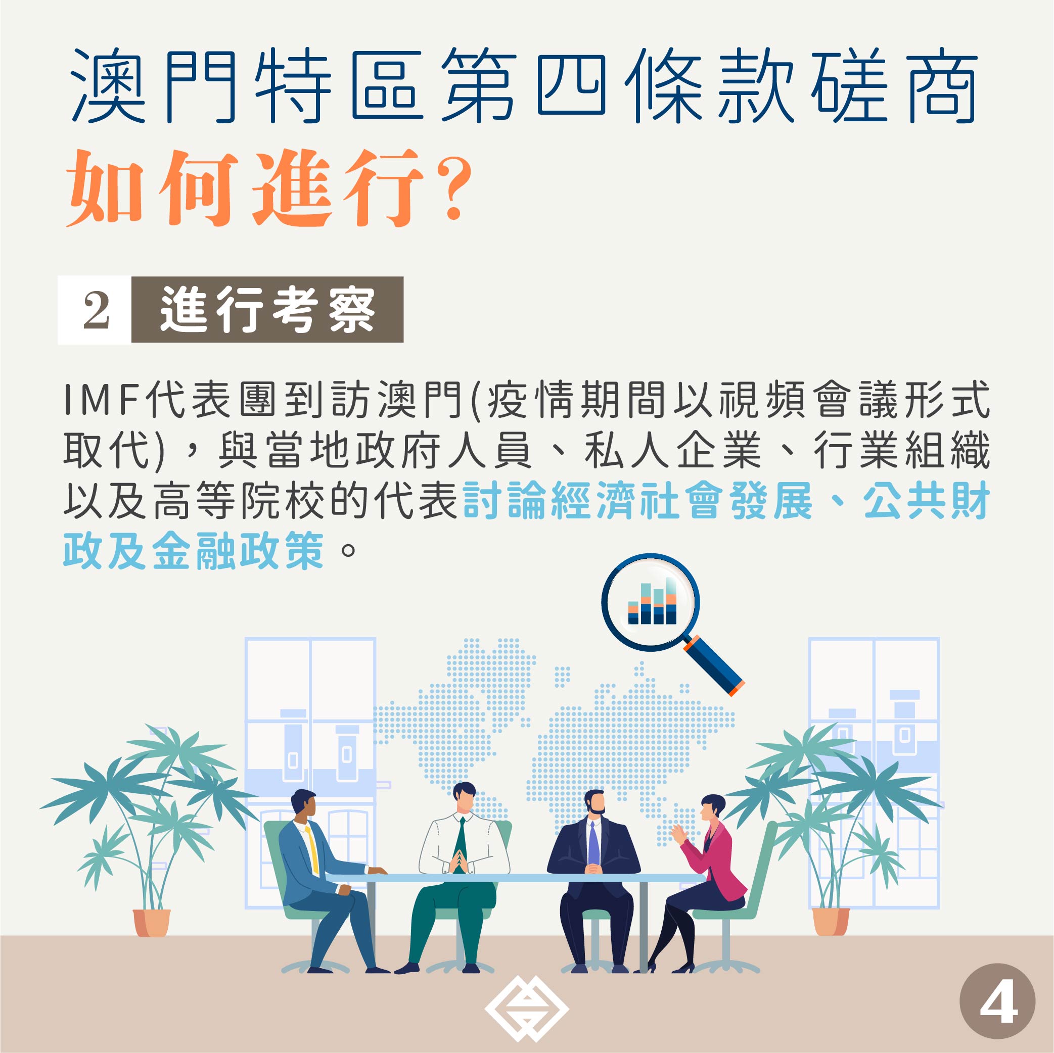 國際貨幣基金組織(International Monetary Fund,IMF)專家代表團於2022年1月10-21日期間,以視頻會議形式對澳門特區進行第四條款磋商,並就特區的宏觀經濟及金融狀況作出了初步總結。