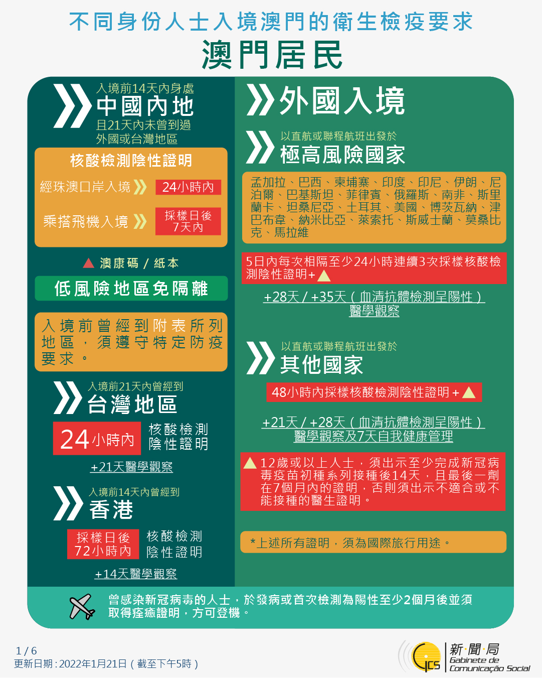 【圖文包】2022/1/27最新入境澳門衛生檢疫要求