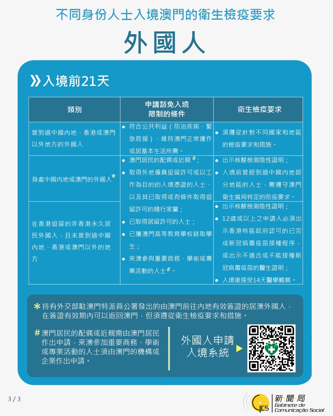 【圖文包】2022/2/1最新入境澳門衛生檢疫要求