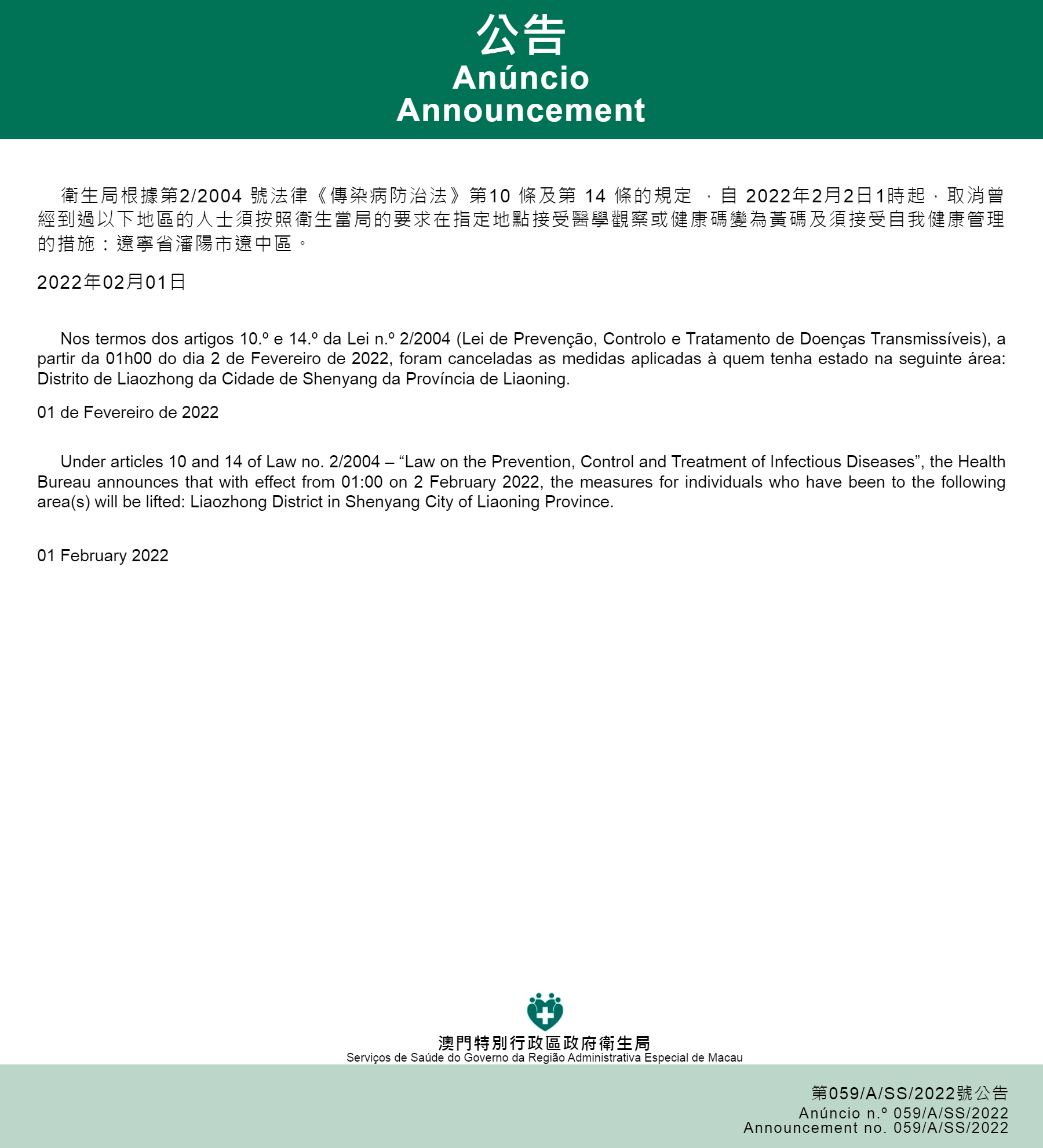 2022年02月02日01時 公告: 第060/A/SS/2022號公告 |