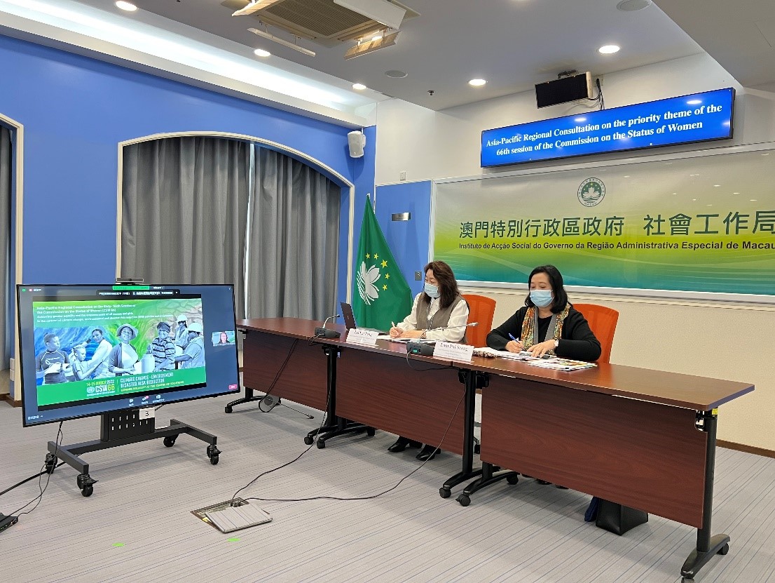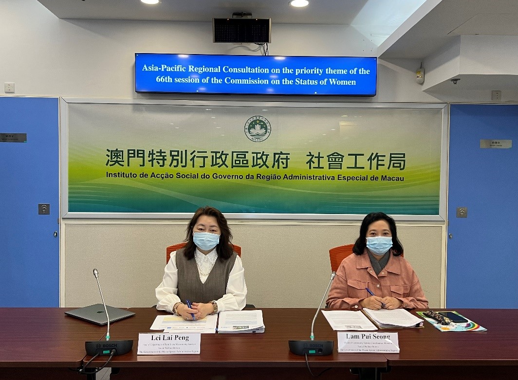 聯合國亞洲及太平洋經濟社會委員會於本月9至10日在總部泰國曼谷舉行聯合國婦女地位委員會亞太地區線上磋商會議,澳門特別行政區政府社會工作局家庭及社區服務廳廳長李麗萍、社區協作處處長林佩嫦以中國澳門代表身份參與。