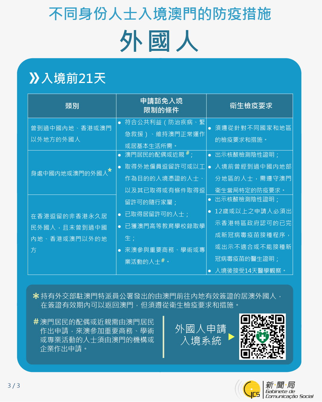 不同身份人士入境澳門的防疫措施