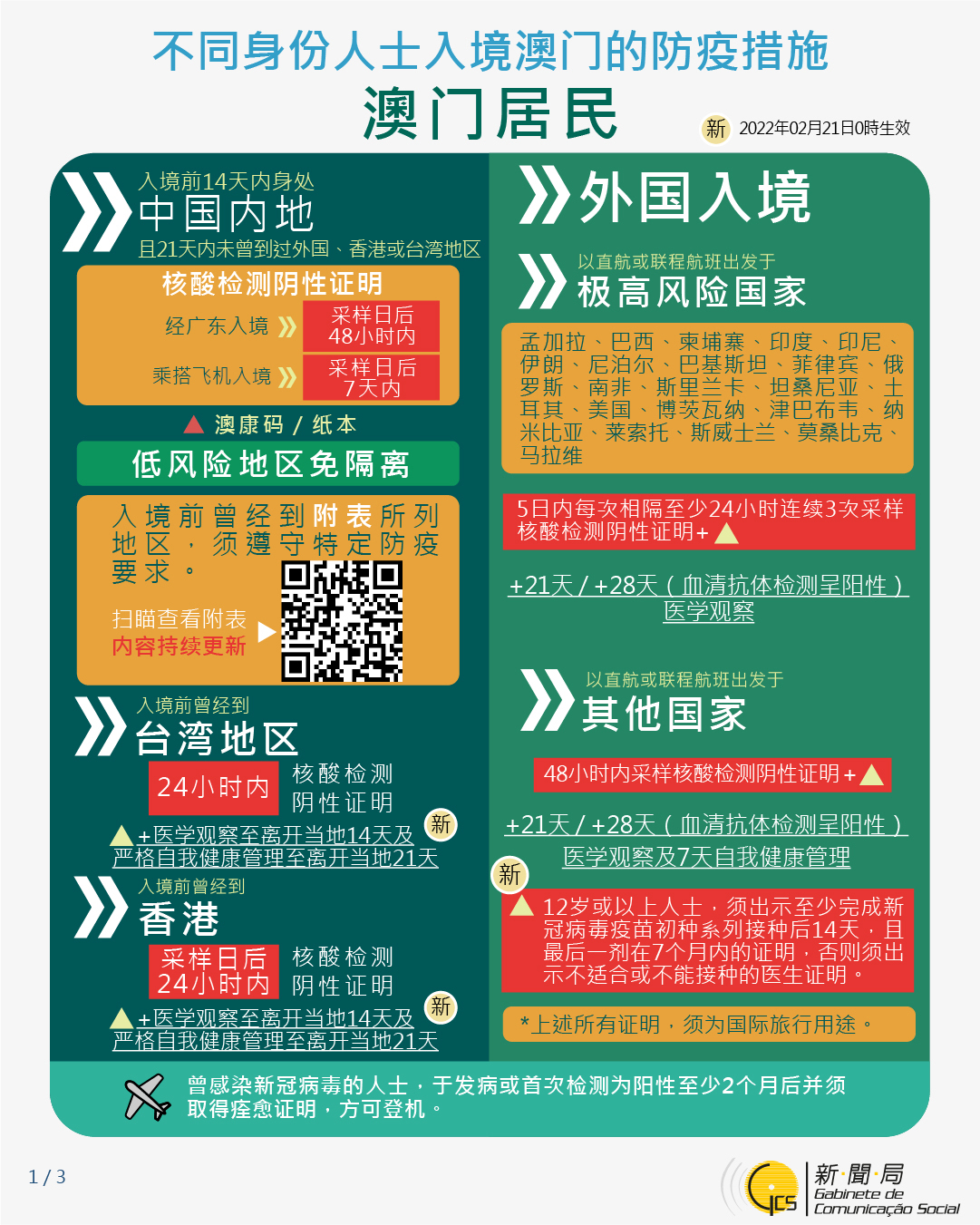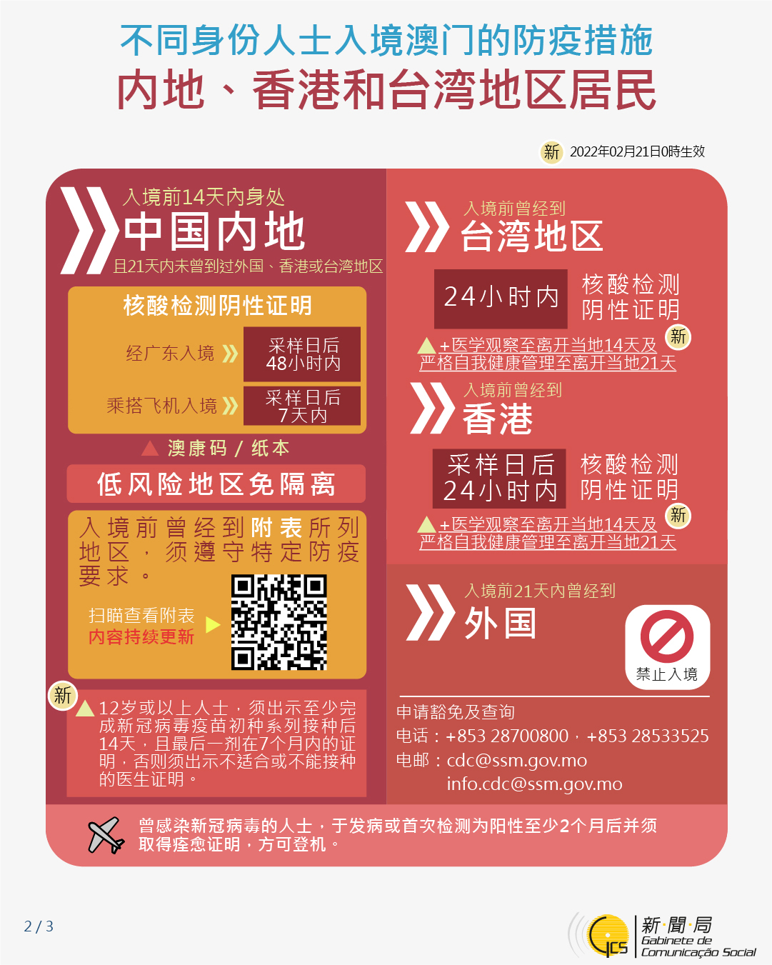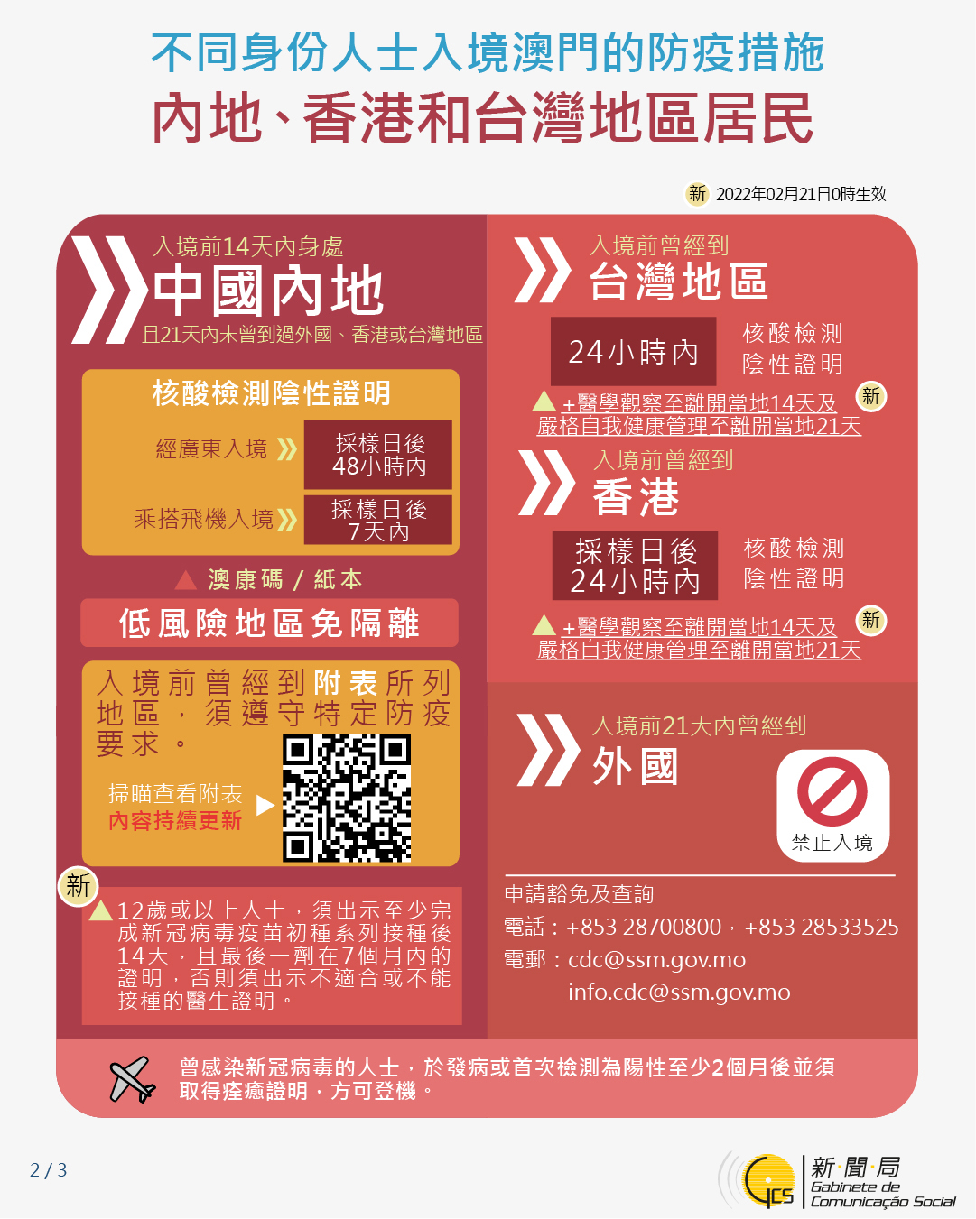 【圖文包】2022/2/17最新入境澳門的防疫措施
