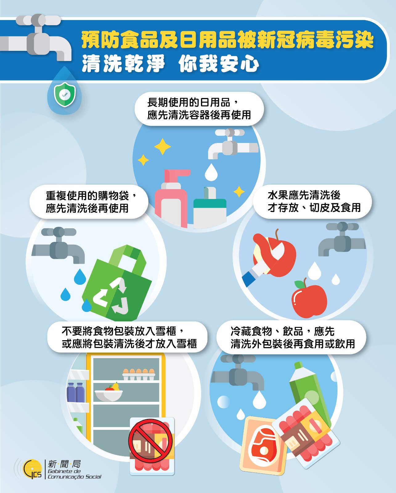 [圖文包]預防食品及日用品被新冠病毒污染 清洗乾淨 你我安心
