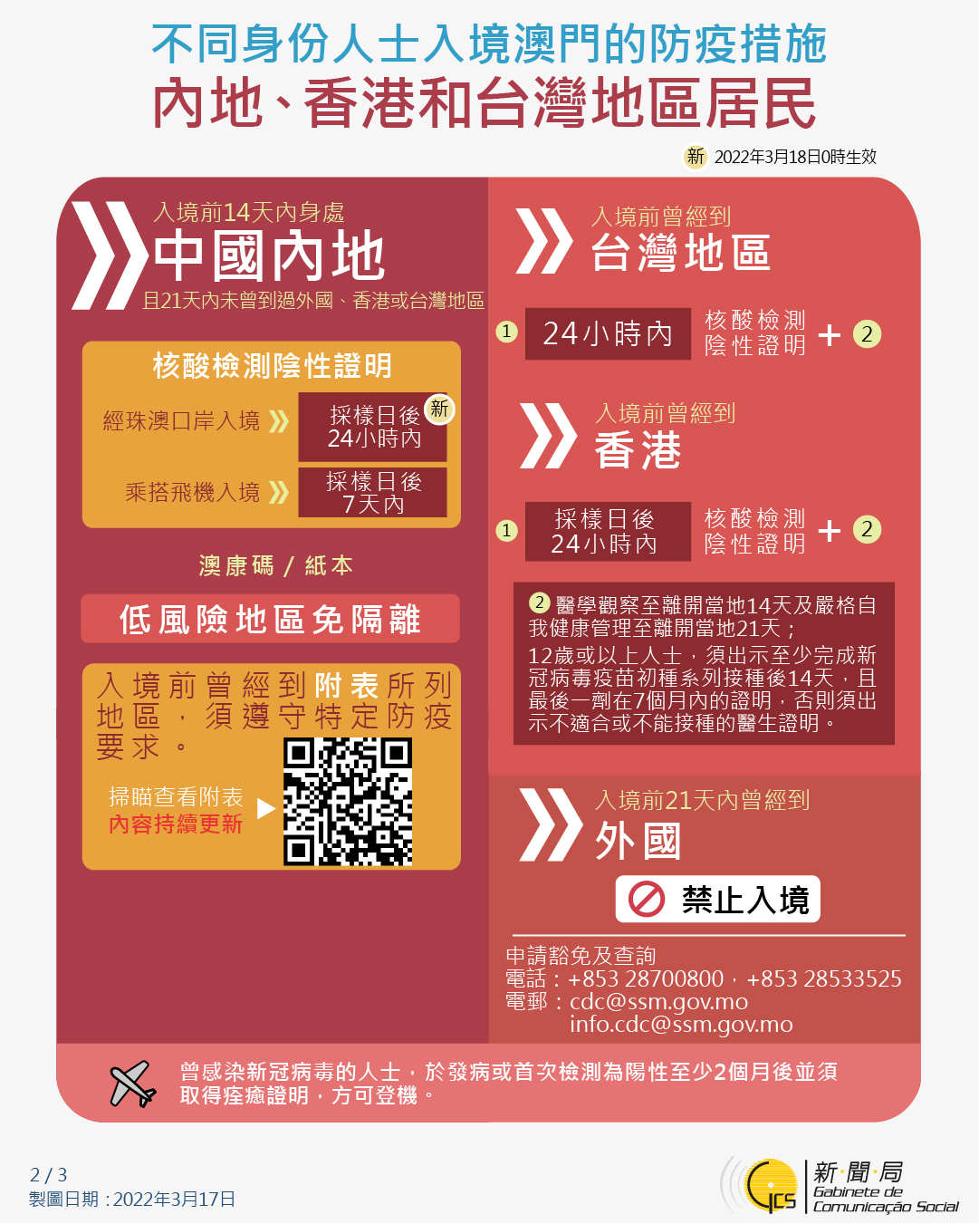 不同身份人士入境澳門的防疫措施