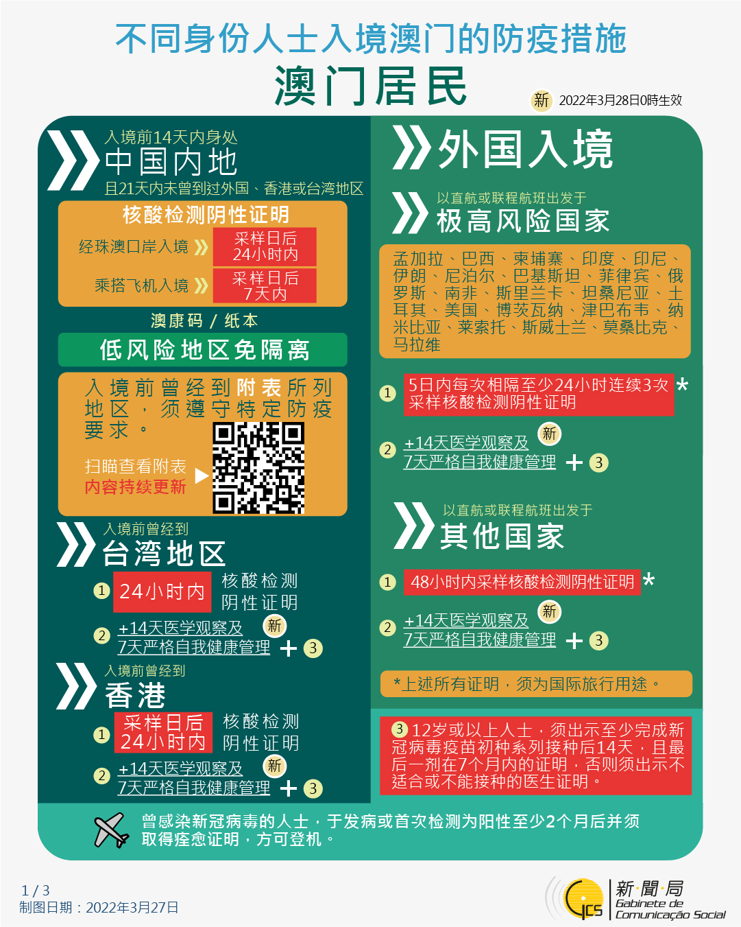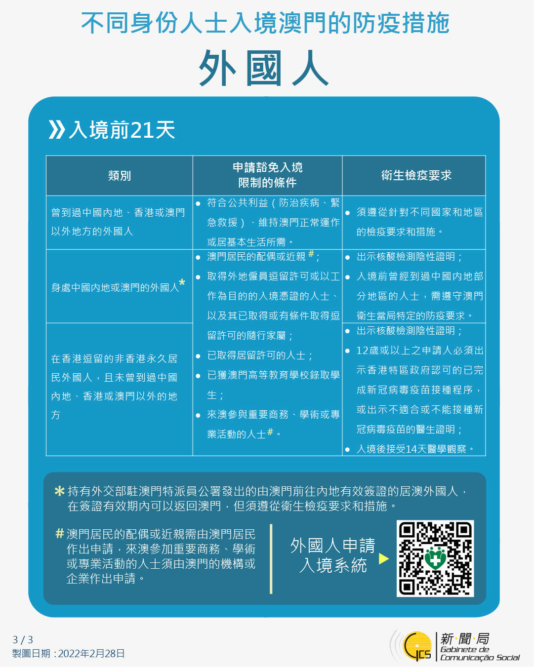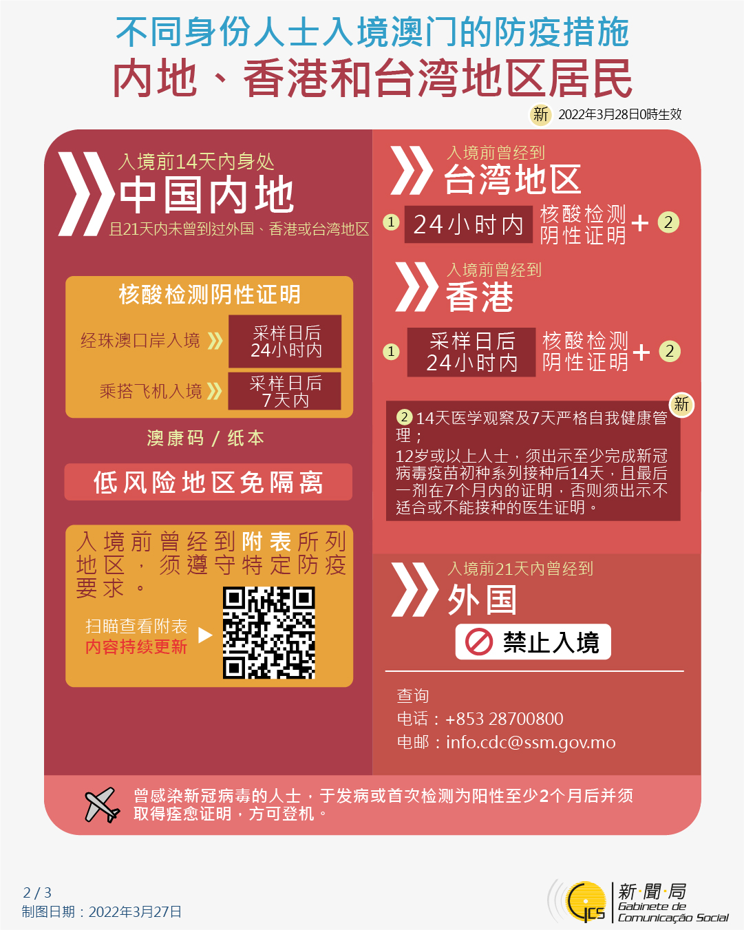 不同身份人士入境澳門的防疫措施