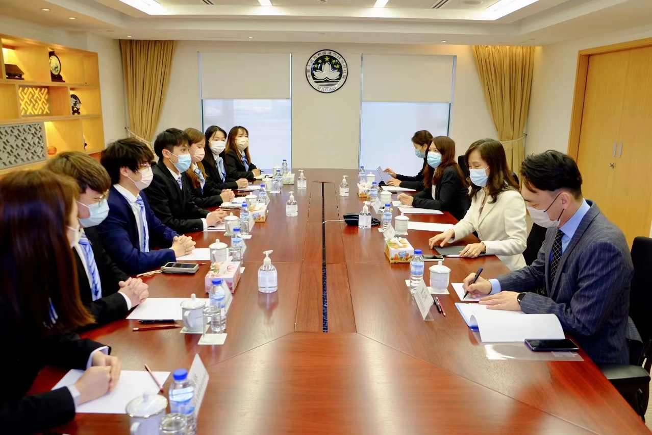 第24屆澳門大學學生會領導機關成員會員大會、理事會、監事會拜訪社會文化司,向社會文化司司長歐陽瑜介紹澳大學生會的工作方針,並聽取其分享,雙方進行了深入的交流。