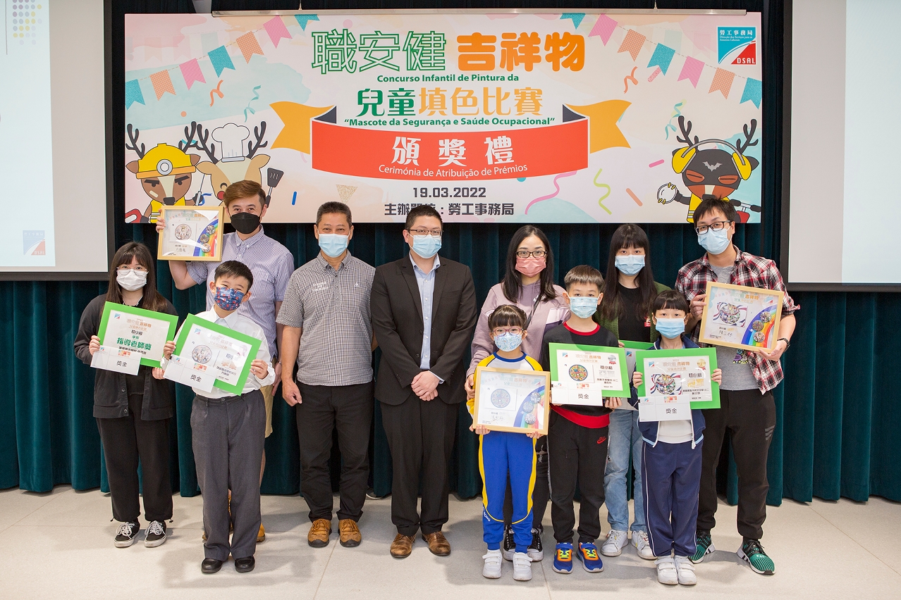 是次「職安健吉祥物」兒童填色比賽能達致向市民大眾宣揚職安健訊息之目的,得獎作品更有助加強職安健宣傳推廣工作的力度,共建職安健文化。比賽頒獎禮已於3月19日假勞工局舉行,出席人士包括得獎學生及指導老師、家長、校長及學校代表,並邀請勞工事務局副局長陳俊宇及比賽各評審主持頒獎。歡迎市民到比賽專題網頁https://www.dsal.gov.mo/zh_tw/standard/mascot_coloring_competition.html瀏覽優勝作品。勞工事務局將會運用有關優勝作品,透過學校展覽及不同宣傳物品,向市民大眾宣揚職安健文化。