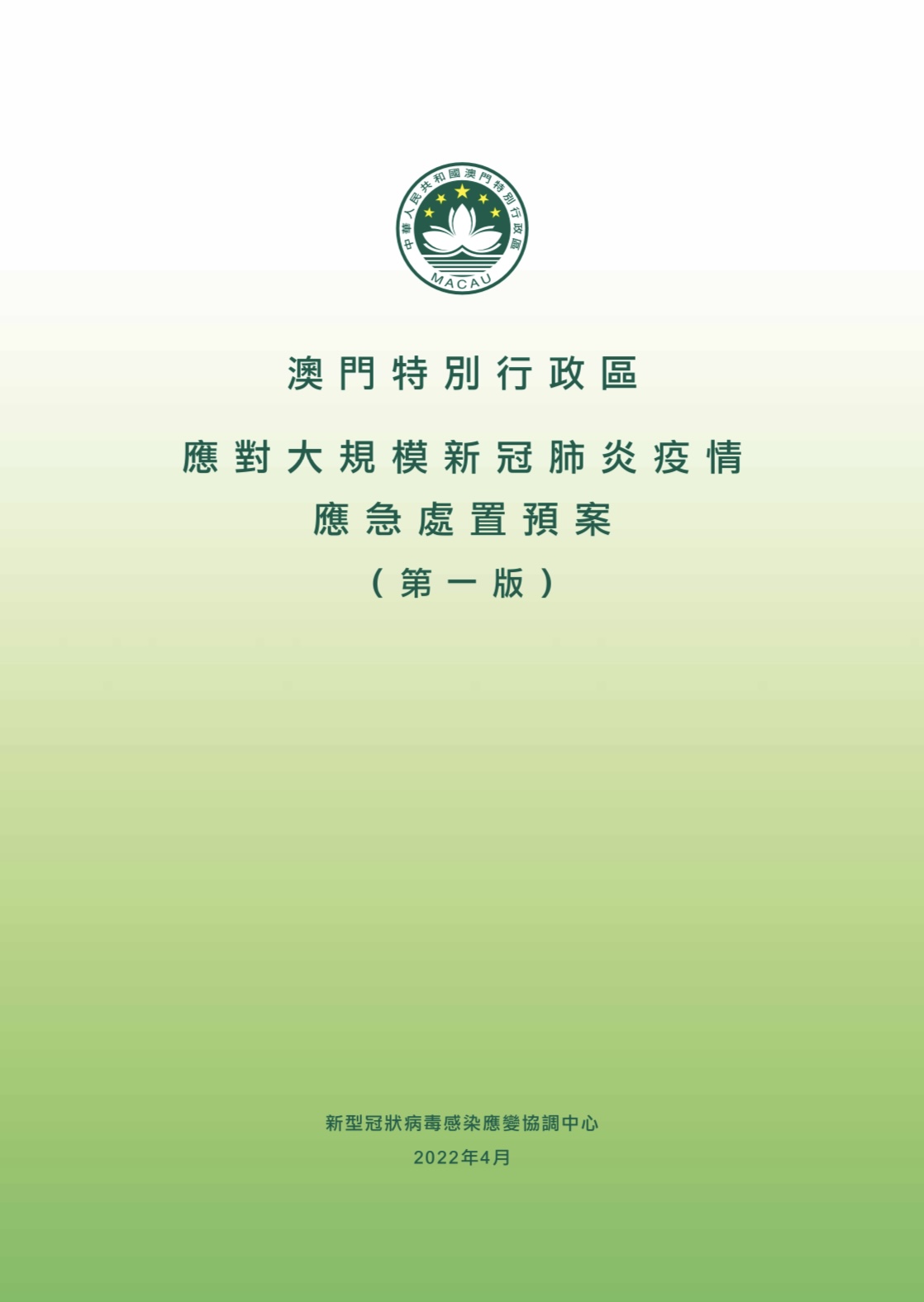 應變協調中心在總結澳門自身的抗疫經驗,聽取各政府部門的意見,收集社會各界的建議,以及參考不同地方的抗疫經驗,根據澳門實際情況,編製了《澳門特別行政區應對大規模新冠肺炎疫情應急處置預案(第一版)》,當中建議成立15 個專責小組跟進後續工作,包括細化工作手冊、開展人員培訓和準備物資,以及進行跨部門演練等。上述《預案》中文版今(6)日已上載至“應對大規模新冠肺炎疫情的澳門應急處置預案專頁”(下載網址:https://www.ssm.gov.mo/docs2/file/p/21928/ch ),葡文和英文版亦於稍後可供下載。