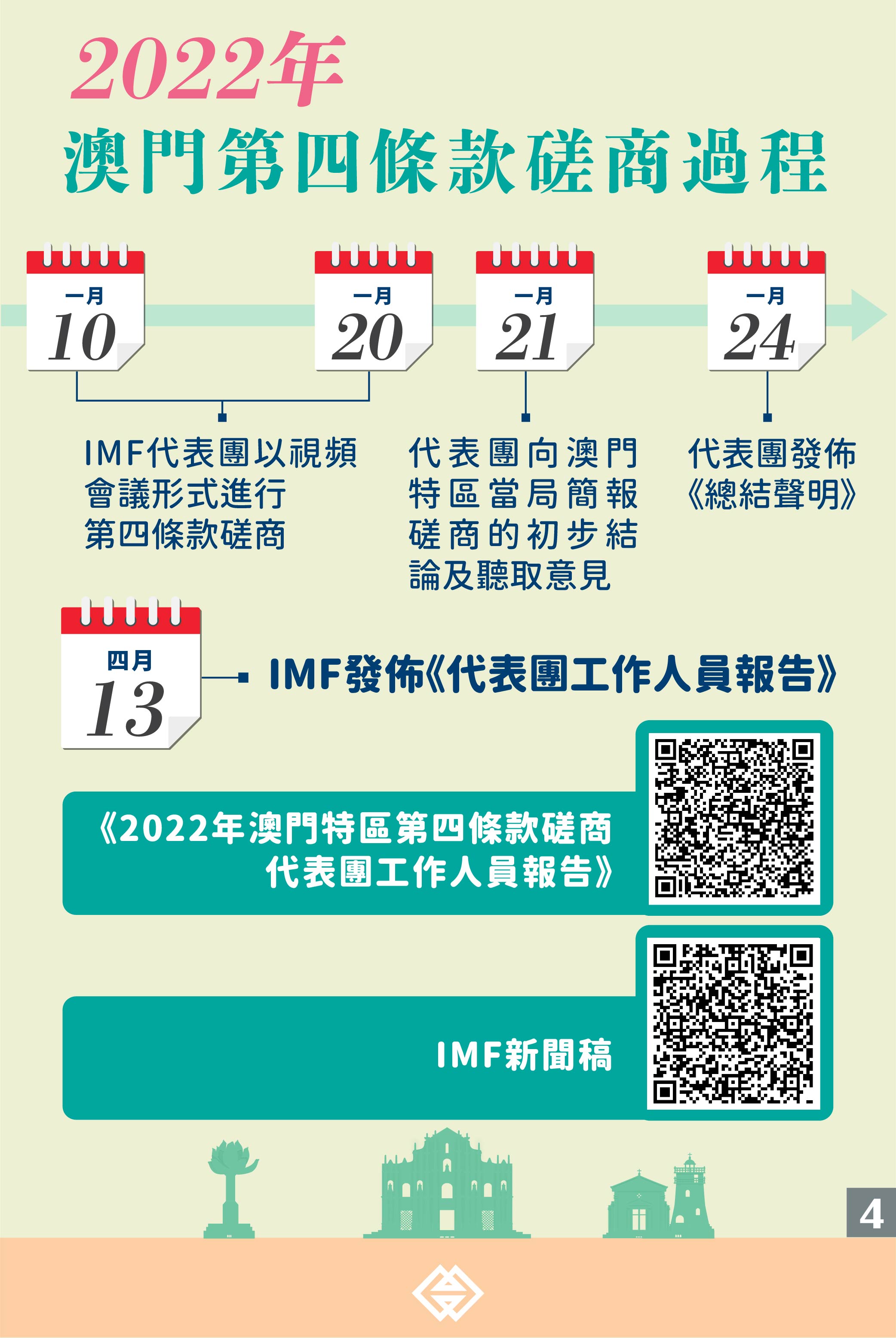 IMF官網已發佈代表團工作人員報告(https://www.imf.org/en/Publications/CR/Issues/2022/04/12/Peoples-Republic-of-China-Macao-Special-Administrative-Region-2022-Article-IV-Consultation-516538)及總結新聞稿(https://www.imf.org/en/News/Articles/2022/04/12/pr22116-imf-executive-board-concludes-article-iv-consultation-macao-special-administrative-region),下一次與澳門特區的磋商,將按照既定的24個月週期進行。