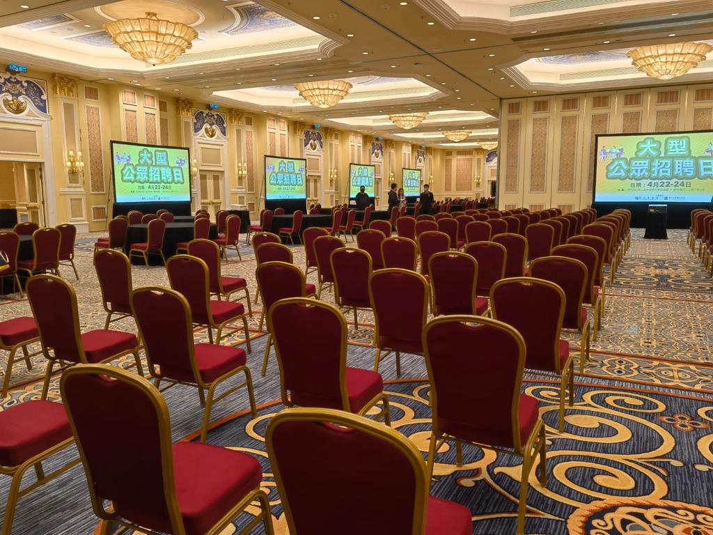 勞工局與工聯總會聯合舉辦「大型公眾招聘日」,22日起一連3日分兩個展場舉行。活動首日(22日)先於威尼斯人金光會展米蘭會議廳舉行,其後兩日(23日及24日)會增加關閘工人體育館展區,提供超過3,000個職位空缺。