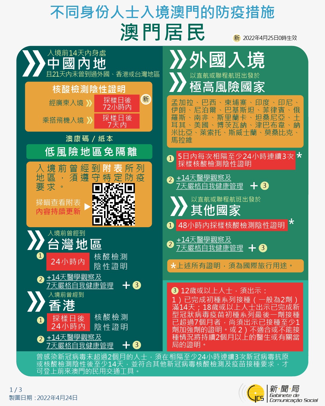 不同身份人士入境澳門的防疫措施