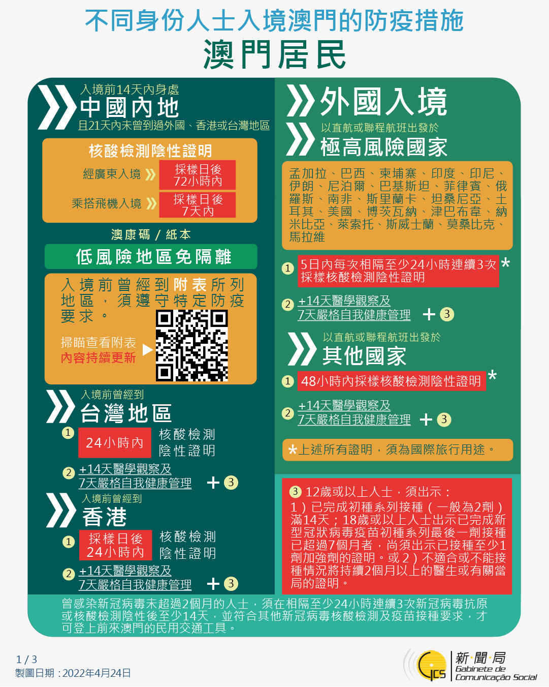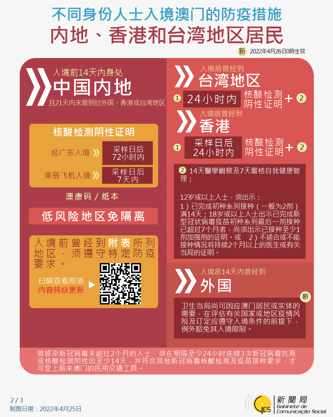 【圖文包】2022/4/25最新入境澳門的防疫措施