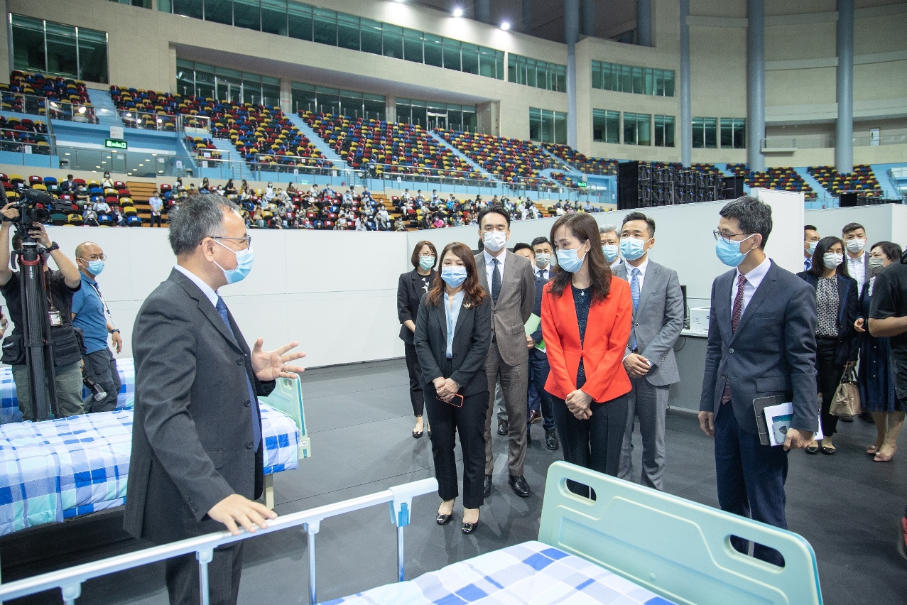 會上亦播放了新冠肺炎快速抗原檢測示範宣傳片,並派發了新冠肺炎快速抗原檢測套裝供與會者試用,以便日後有需要時協助教導市民進行快速抗原檢測。與會者亦參觀了設於澳門東亞運動會體育館內的「新型冠狀病毒感染社區治療中心」(方艙醫院)。