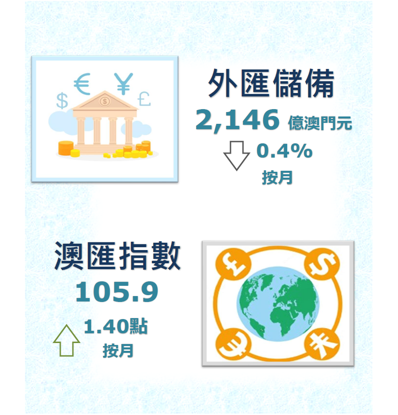 2022年4月的貿易加權澳匯指數為105.9,較上月及去年同期分別上升1.40點及2.90點,顯示總體來說,澳門元兌澳門主要貿易夥伴的貨幣出現上浮的情況。
