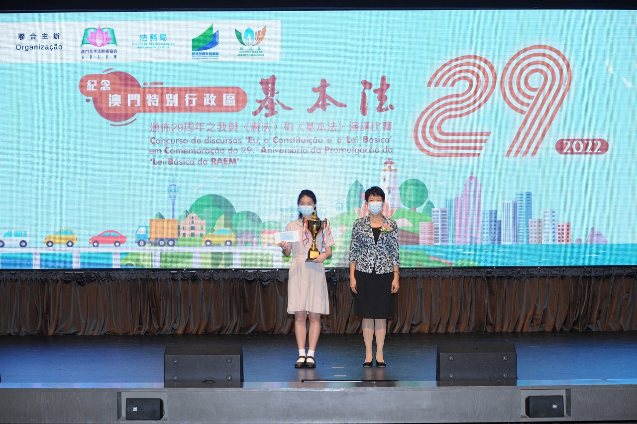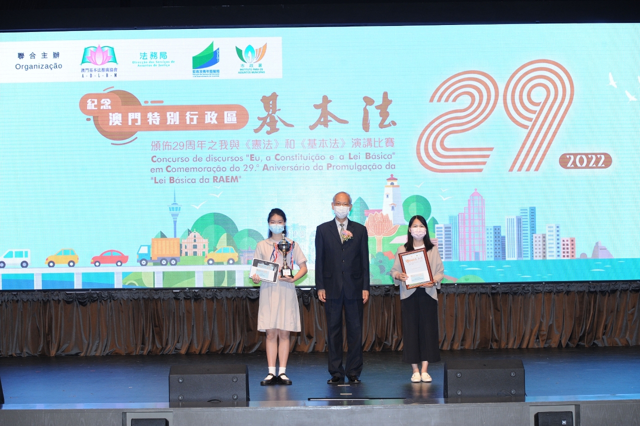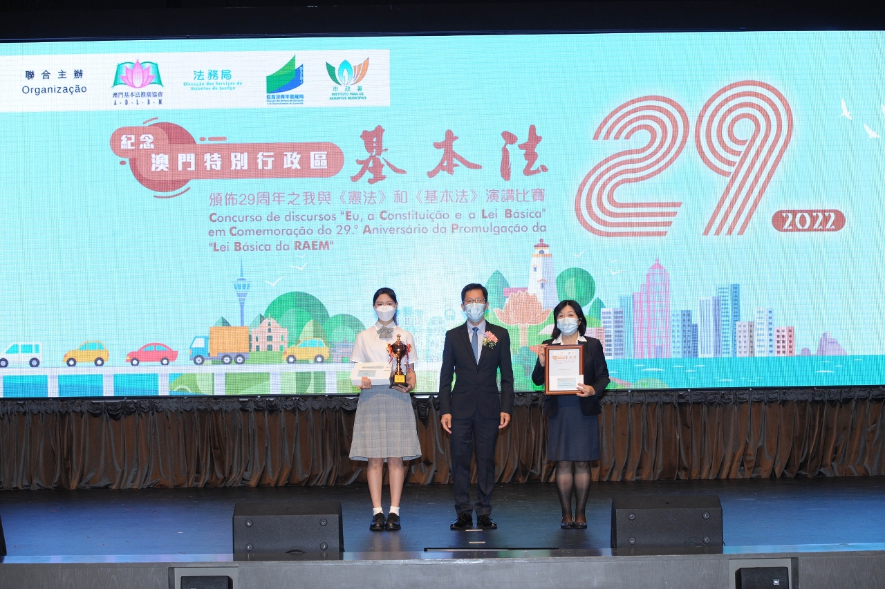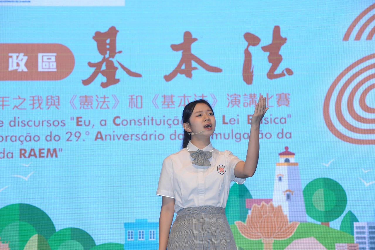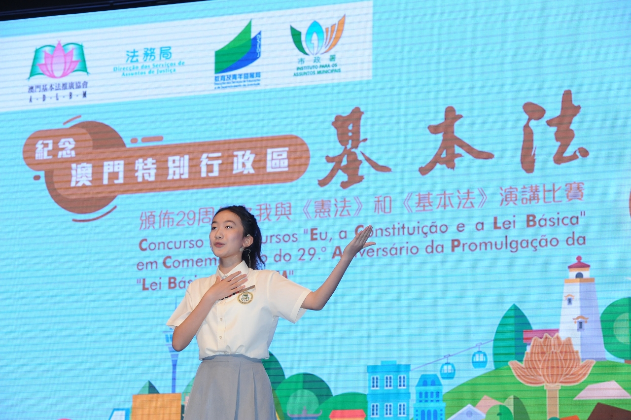 為持續向青年學生推廣《憲法》和《基本法》,澳門基本法推廣協會、法務局、教育及青年發展局、市政署聯合主辦的 “紀念《澳門特別行政區基本法》頒佈29周年之我與《憲法》和《基本法》演講比賽”決賽已於5月15日在聖保祿學校禮堂順利舉行。為配合防疫工作,減少人群聚集,今次比賽縮減了現場規模,並增設了網上直播功能,讓老師、同學可以透過網上直播為參賽同學打氣。