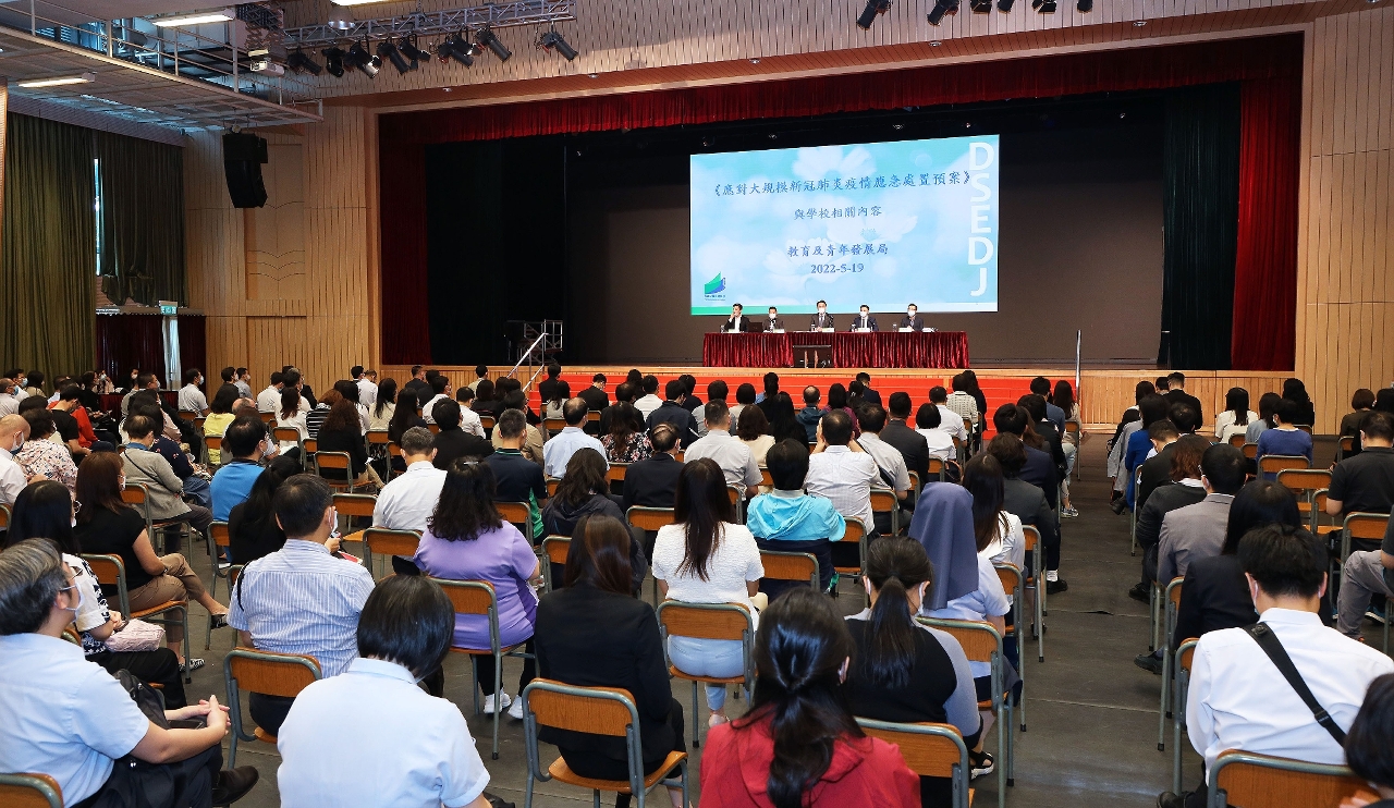 因應特區政府早前舉辦的《應對大規模新冠肺炎疫情應急處置預案》宣講會,為了讓學校進一步瞭解《預案》中由學校協助的防疫工作範圍,跟進落實相關具體工作安排,提升學校應對疫情的能力。教育及青年發展局於2022年5月19日下午假教業中學舉行《應對大規模新冠肺炎疫情應急處置預案》協調會。會議由局長龔志明主持,副局長丁少雄、阮佩賢、黃嘉祺和部門主管,以及所有學校領導和代表出席。