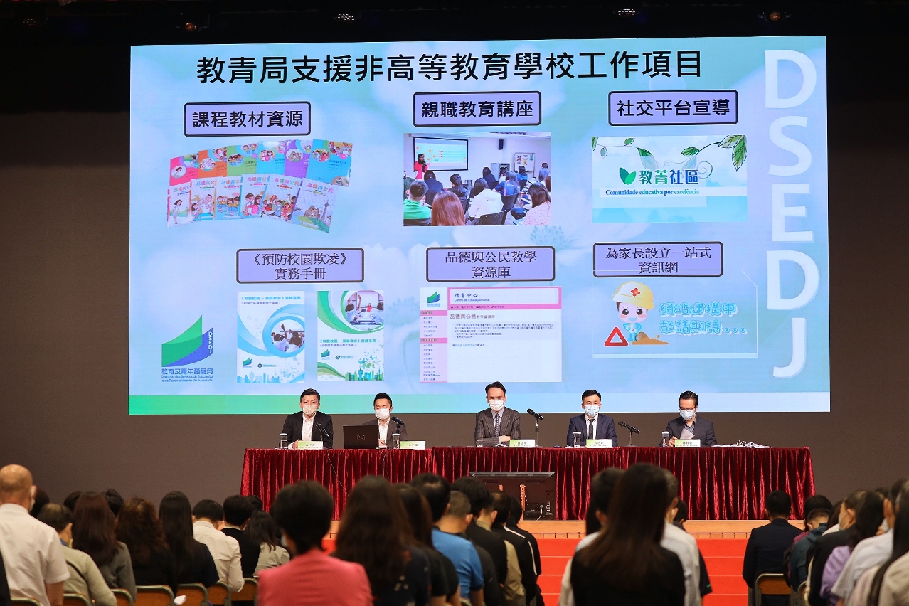 為進一步關心青少年學生身心健康,非高等教育廳廳長張子軒介紹了學生身心健康支援工作,與非高等教育學校探討在“校園危機管理專責小組”成員中,增設“校園身心健康工作小組”,從而幫助學校感應和辨識高危學生,希望能提早預防,及時發現,適切介入。教青局稍後亦會透過指引、教材和網頁資訊,進一步支援學校開展相關工作。