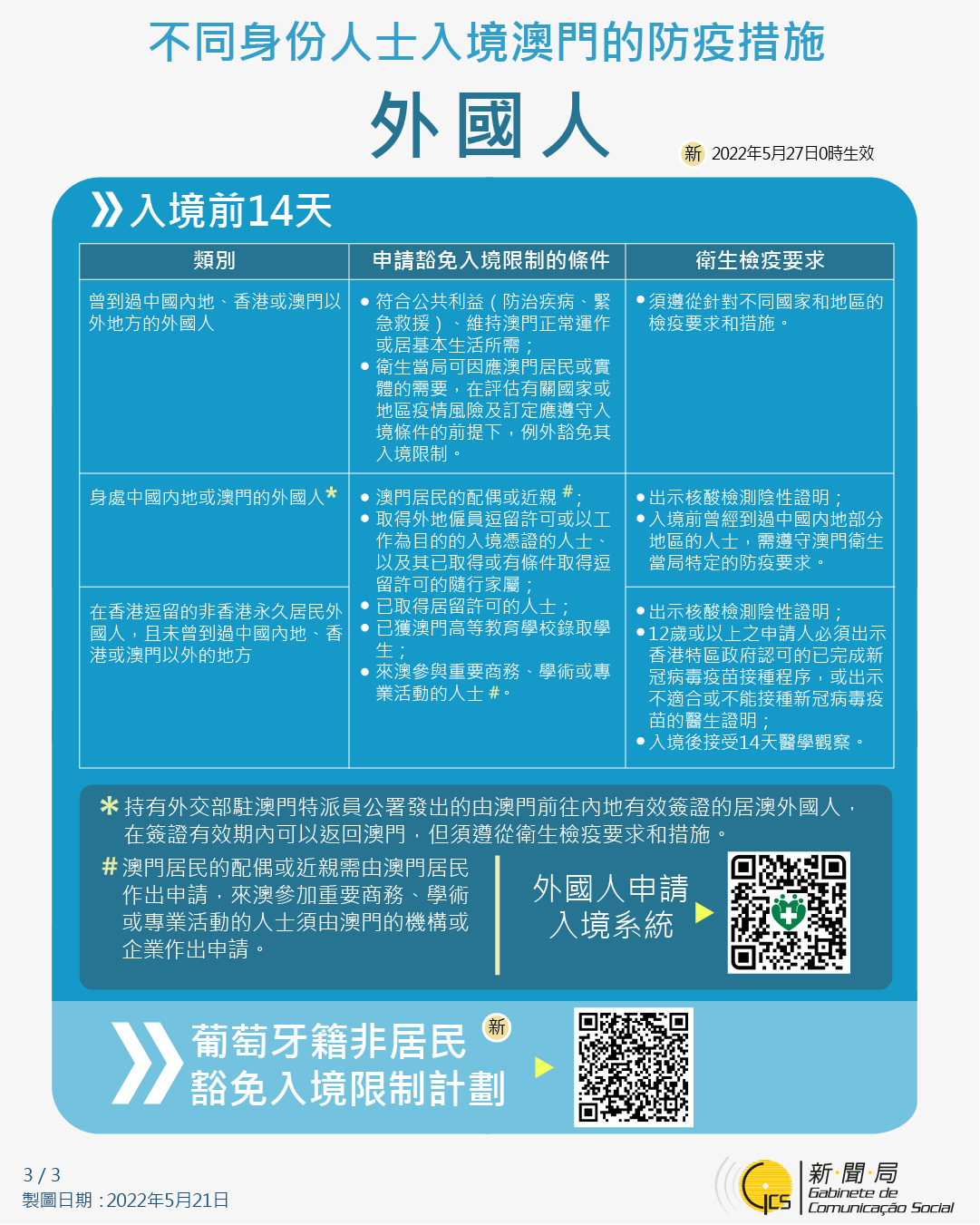 【圖文包】2022/5/21最新入境澳門的防疫措施