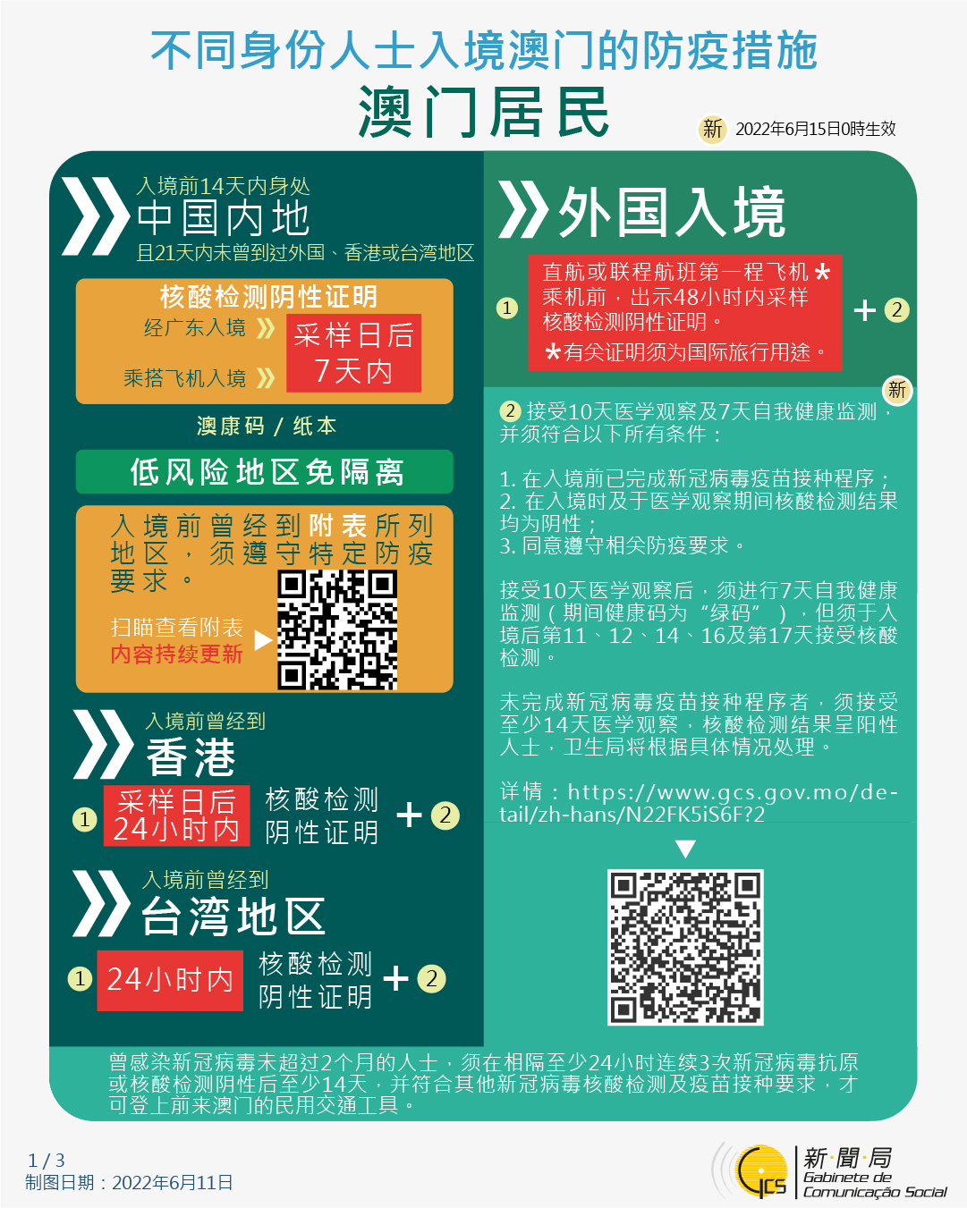 【圖文包】2022/6/11最新入境澳門的防疫措施