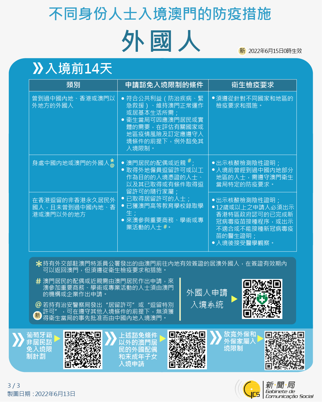 【圖文包】2022/6/13最新入境澳門的防疫措施