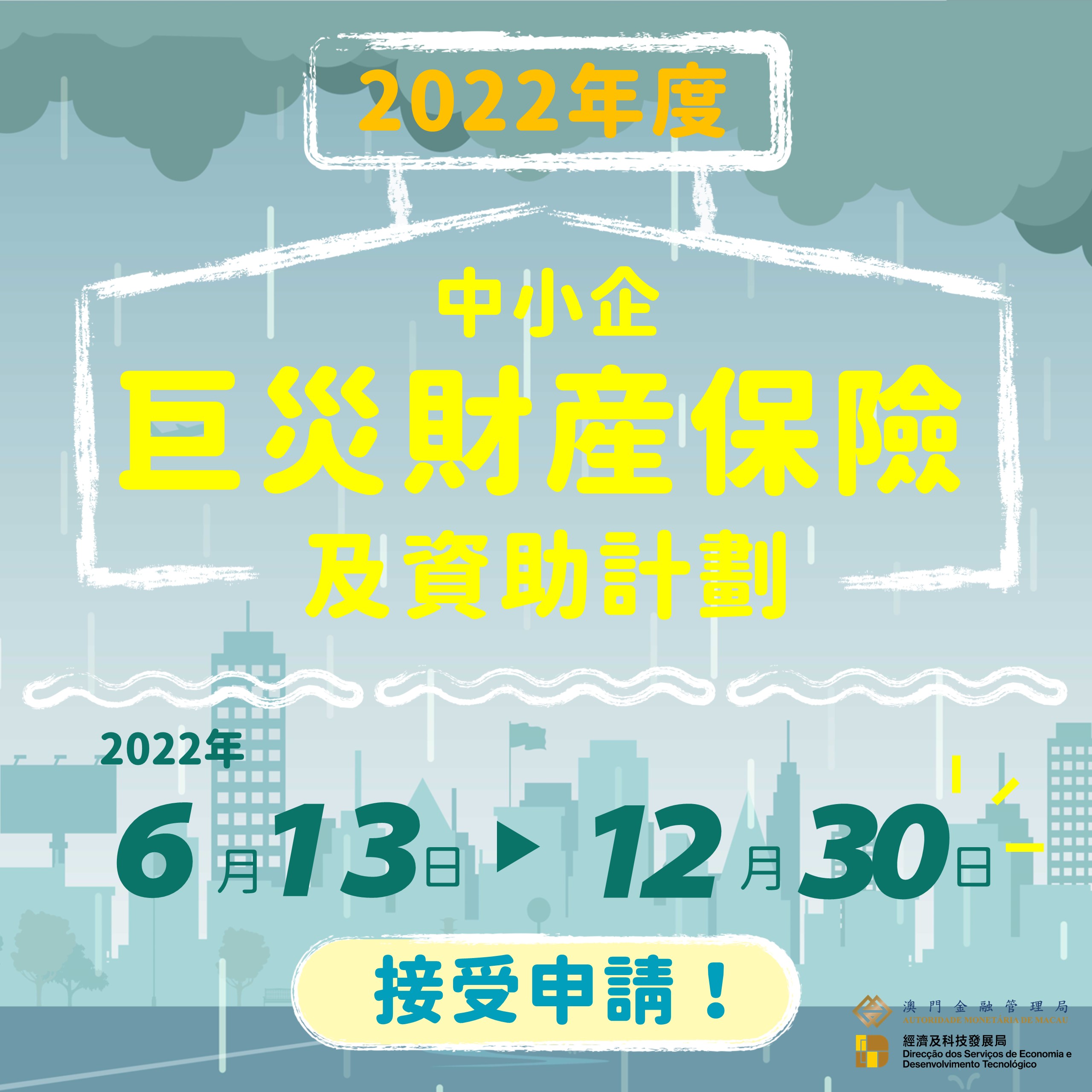 2022年度的“中小企巨災財產保險”(下簡稱“巨災保險”)及“中小企巨災財產保險資助計劃”(下簡稱“巨災保險資助”),今(13)日起至今年12月30日分別接受投保及申請,今年擴大保障範圍至黑色暴雨警告信號期間的損失,希望更切合中小企需要。